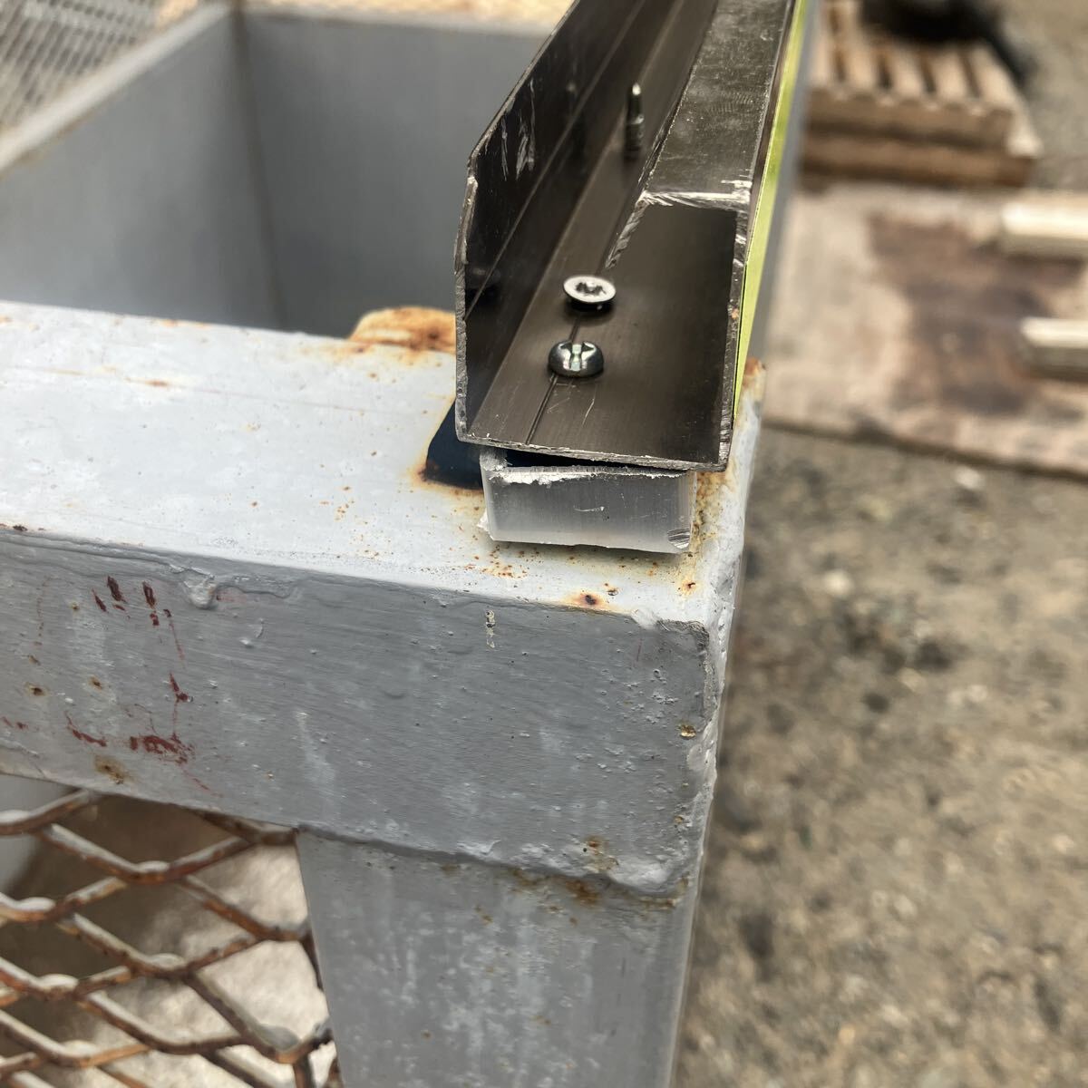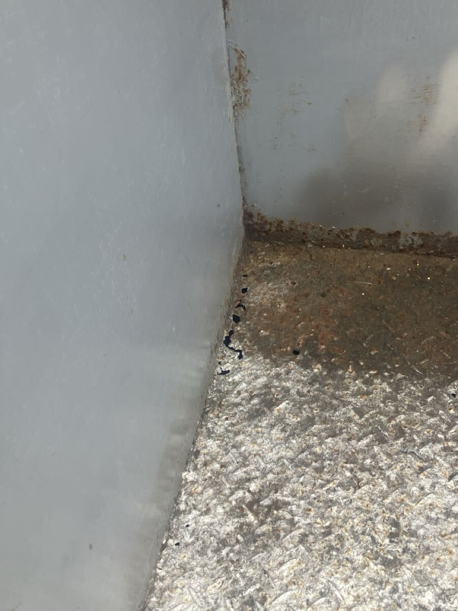 正面、左下角に腐食を確認。
