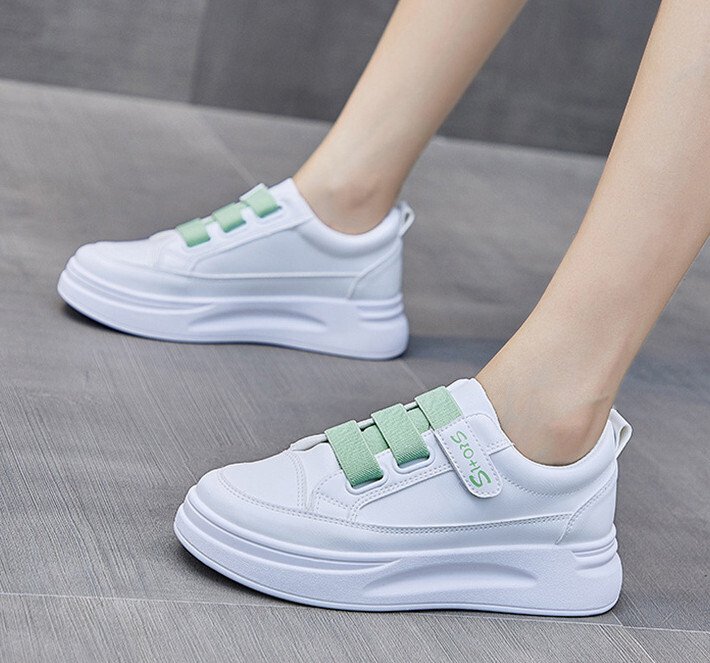 厚底スニーカー ローカット マジックテープ おしゃれ フラットシューズ バイカラー 美脚 シューズ 歩きやすい 疲れない グリーン 24.5cm