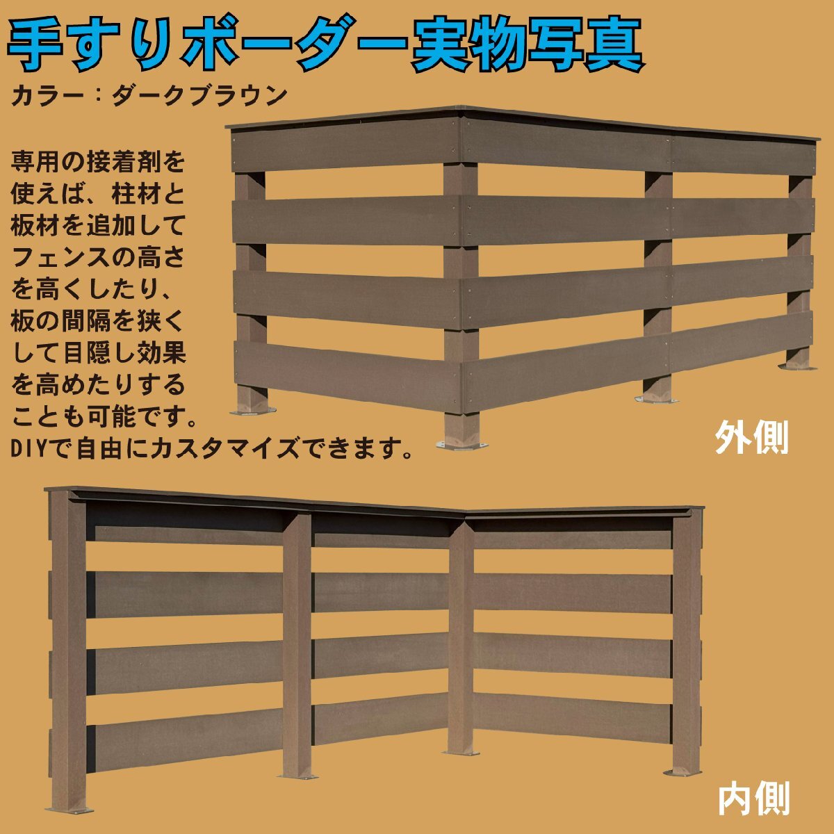igarden アイウッドデッキ 5点セット 0.5坪 ダークブラウン 樹脂製 手摺り付き 横柵ハイタイプフェンス ボーダー バルコニー -2d3hbddb