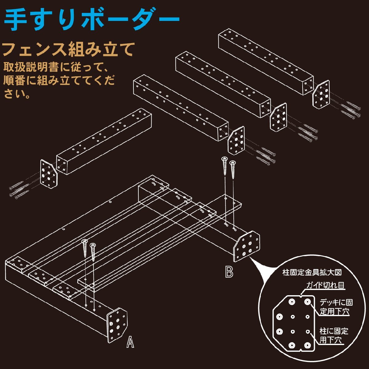 セット内容・商品寸法(単位mm):900×900×高さ280デッキ×2台、幅900×奥行145×高さ800フェンス×3枚