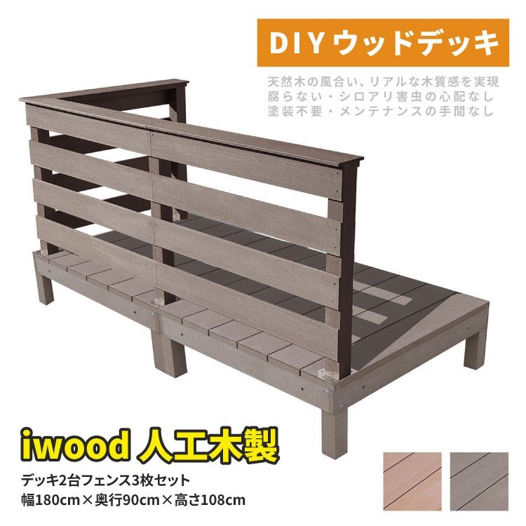 igarden アイウッドデッキ 5点セット(デッキ2・ハイフェンス3)ダークブラウン 樹脂製