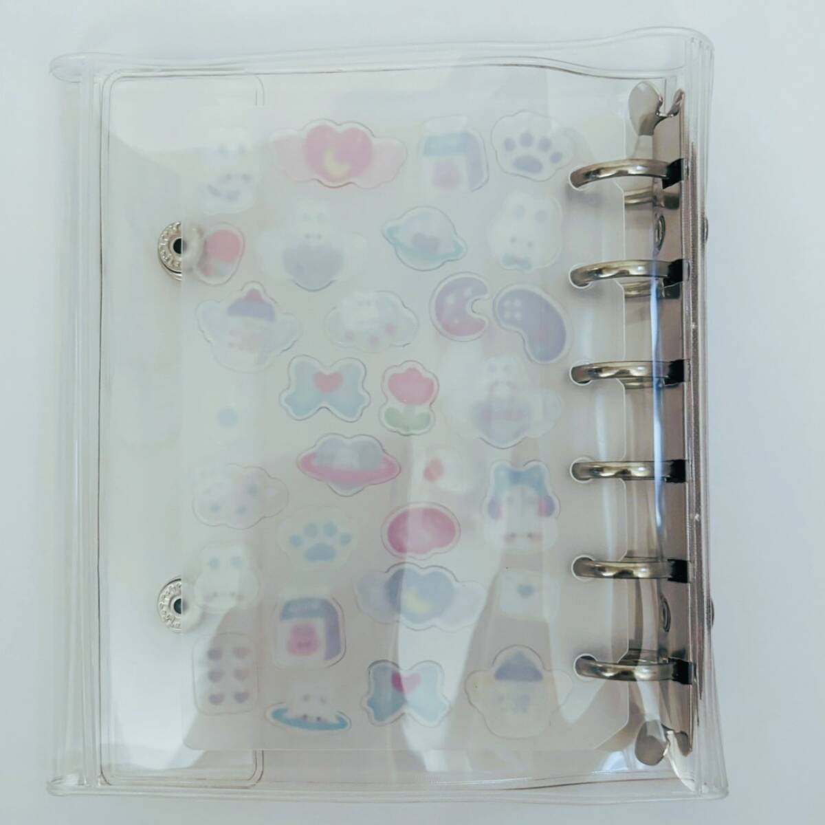 A7サイズ ミニ6穴 ダブルボタンのクリアバインダー&シール台紙リフィル20枚セット★