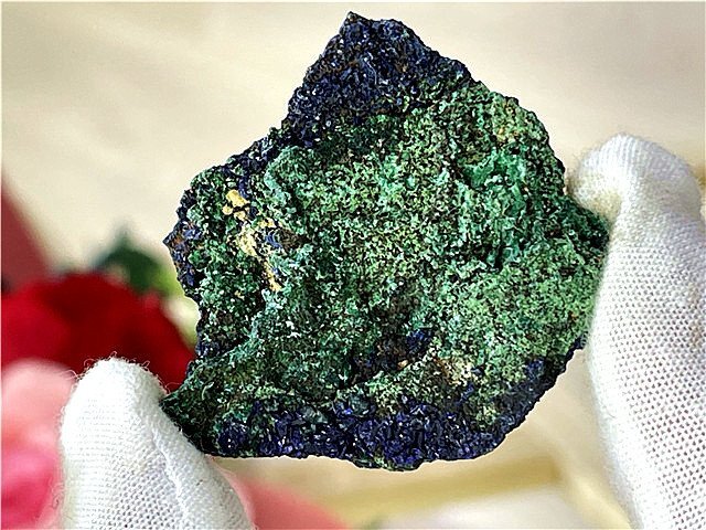 ペルシャ語の「青い石」が起源です。古代ネイティブアメリカンのシャーマンは、アズライトを聖なる石として崇め、聖者の道具として用いてきました。それは彼らの祈りに声を与え、彼らの祈願を天に届けてくれると信じられてきました。アズライトは、彼らの神やスピリチュアルな世界への扉を開く天からのギフトでした。シャーマンの多くはアズライトを身につけ、部族の問題を精霊の世界や「星の世界の人々」と語りあう時ににそれを使用しました。また、アズライトは中国とエジプト文明でも崇拝され、とりわけ中国では、「天の石」として知られています。両方の文明において、聖なる建造物の装飾に使われてきました。エジプトでは、アズライトは人体を飾るために使用され、僧侶たちは彼らのスピリチュアルなパワーを高めるために、顔、眼の部分をアズライトで彩色をほどこしてきたと言われています。額に置くことで、透視能力を高めると考えられていたからです。このように、アズライトは古来からヒーリングパワーがとても強く、 また、アズライトは人の潜在意識に働きかけ、眠っている知恵や潜在能力を引き出すといわれます。そのためか、古代から「予言の石」として扱われてきました。この石を枕の下に置いて眠ることにより、予知夢が見やすくなり、大事な物事に対処する時やギャンブルの時にはヒントを与えてくれる可能性もあるようです。 実際、アズライトを頭頂部や額の辺りにもっていき、波動を感じてみてください。不思議と頭がすっきりします。直感力、洞察力が高まることにより、勉強するときやインスピレーションが欲しいときにはぴったりの石であると言えます。いつも優柔不断で物事をはっきり決められない人には、適切な決断力をもたらしてくれま
