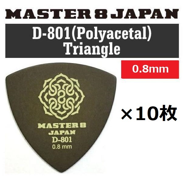 10枚セット MASTER8 JAPAN D801-TR080×10 D-801 ポリアセタール 三角 0.8mm ギターピック ピック