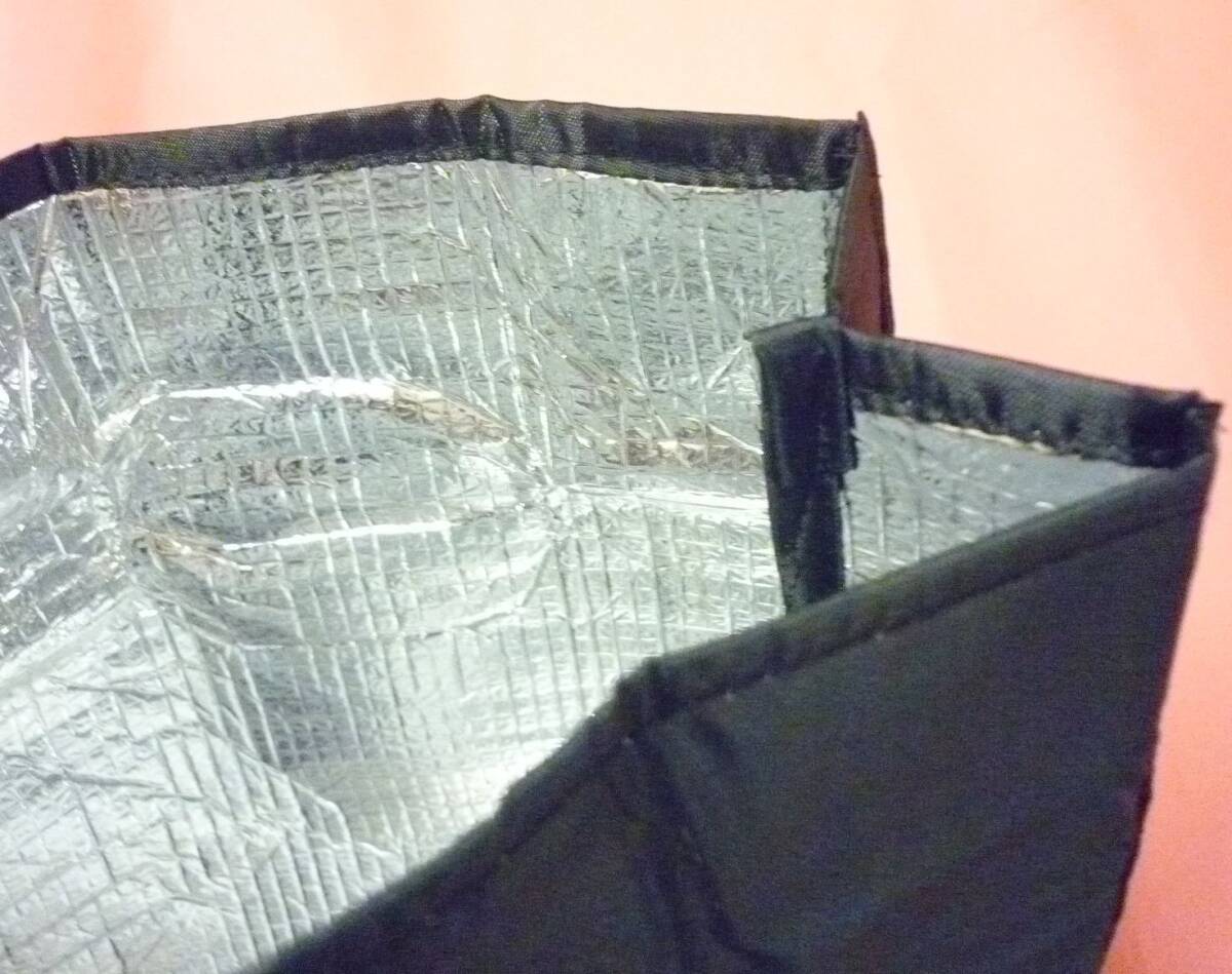 ・材質:表示/ナイロン、断熱材/発泡ポりエチレン、裏地/アルミ蒸着フィルム、ベルト/ポリエステル、ゴム、ナイロン