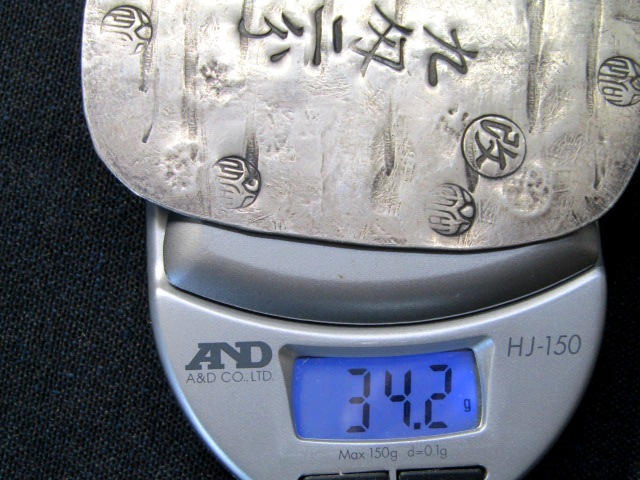 【会】☆古銭 小判 秋田九匁二分銀判 秋田銀判 地方貨幣 重量34,2g 参考品☆