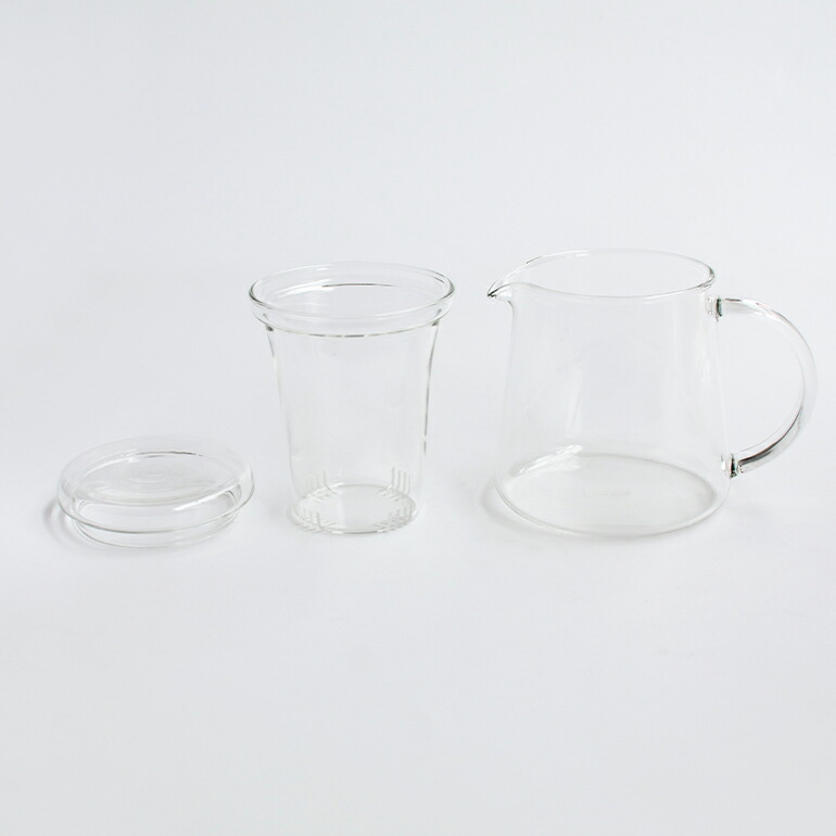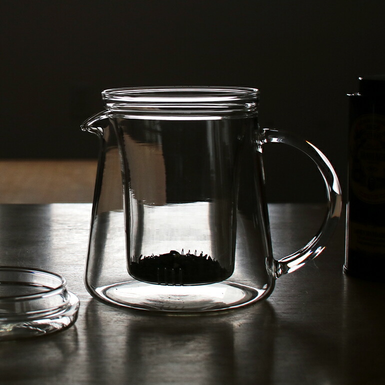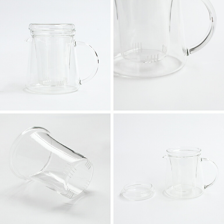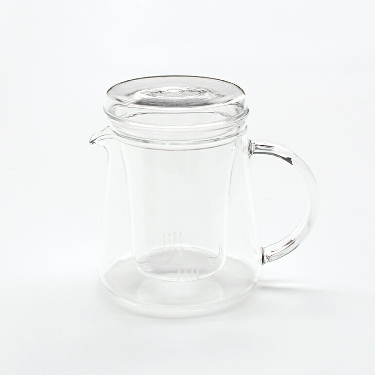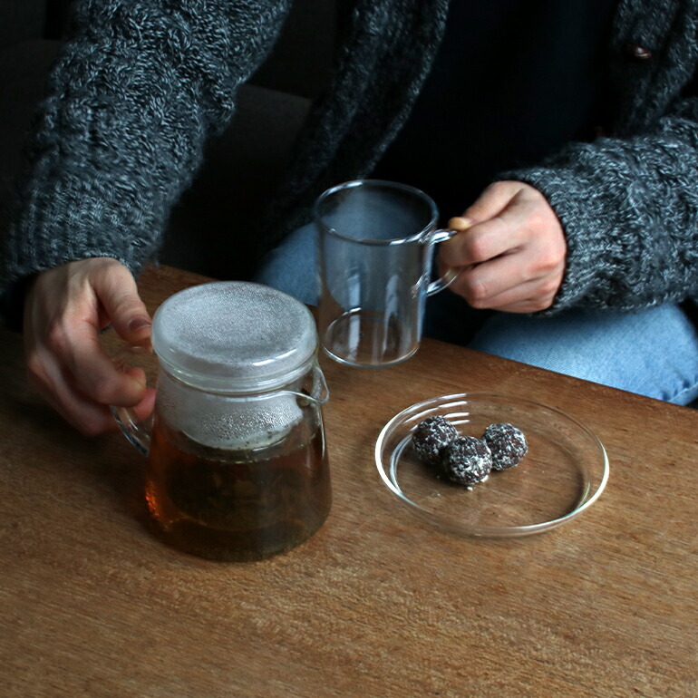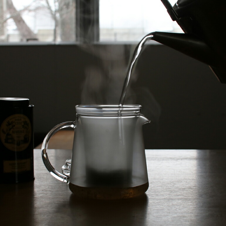 耐熱ガラスのストレーナー付きのtea pot。