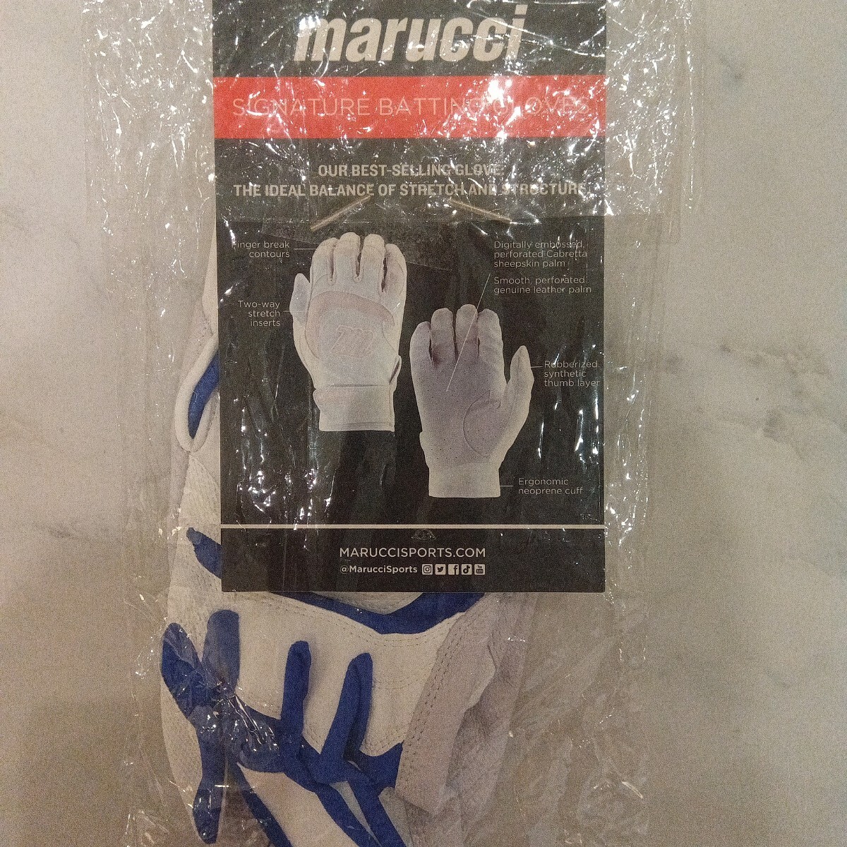 マルーチバッティンググローブ新品未使用 サイズM ホワイト×ロイヤルブルー 羊革 定価8000円位でした。