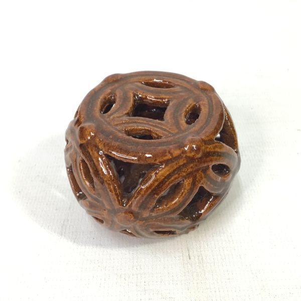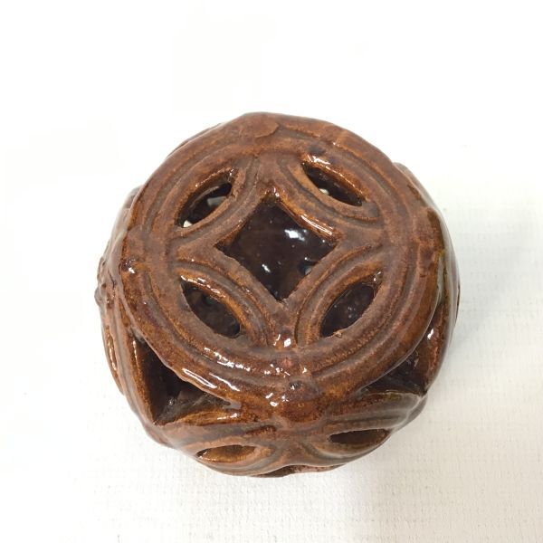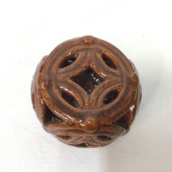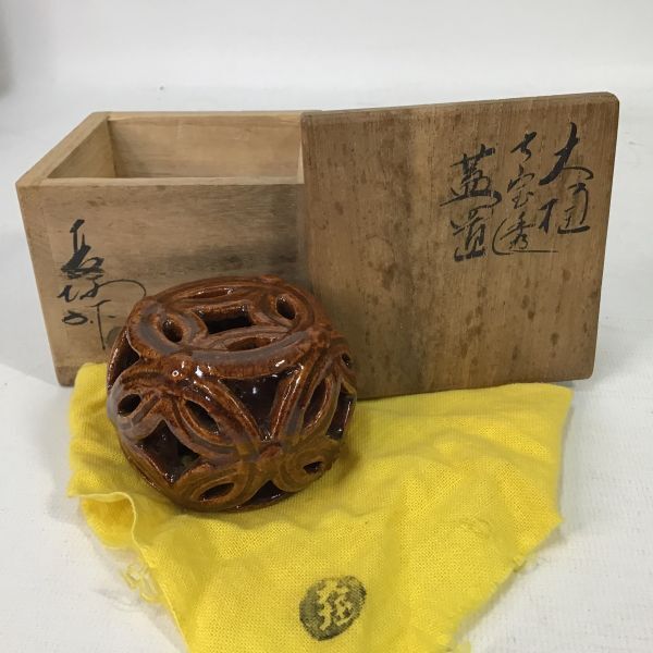 ■大樋焼 七宝透 蓋置 大樋長阿弥作 茶道具 中村長阿弥 共箱 共布