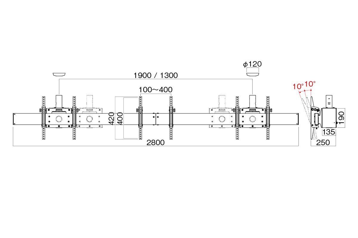 ●総耐荷重:120kg (※取付ディスプレイ:40kg以下 / 台)