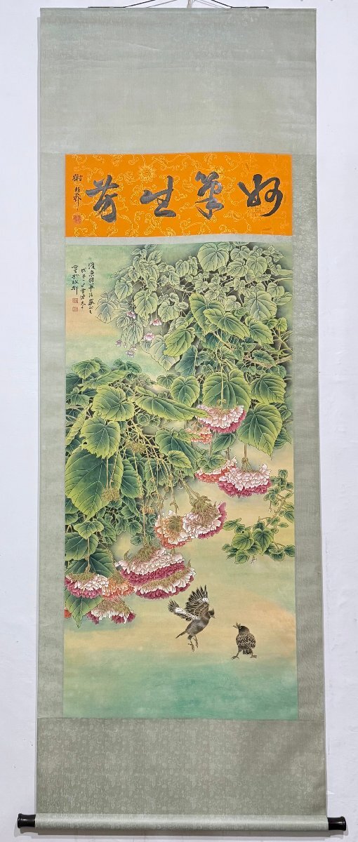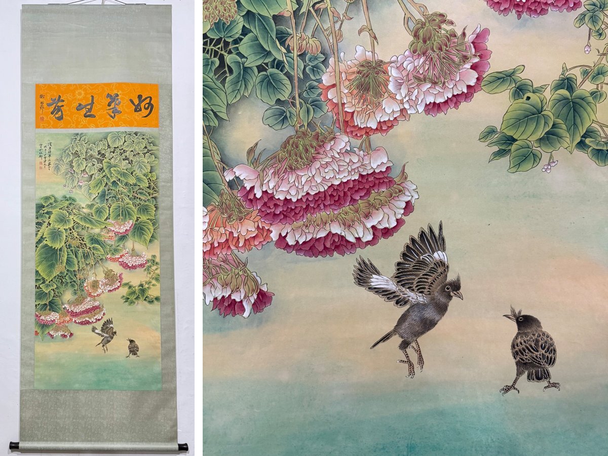 【安】中国近時代画家「張大千書」紙本「花鳥図」掛軸 中国画 墨寶妙品 中国書道 古美術 424 サイズ(約寸) |