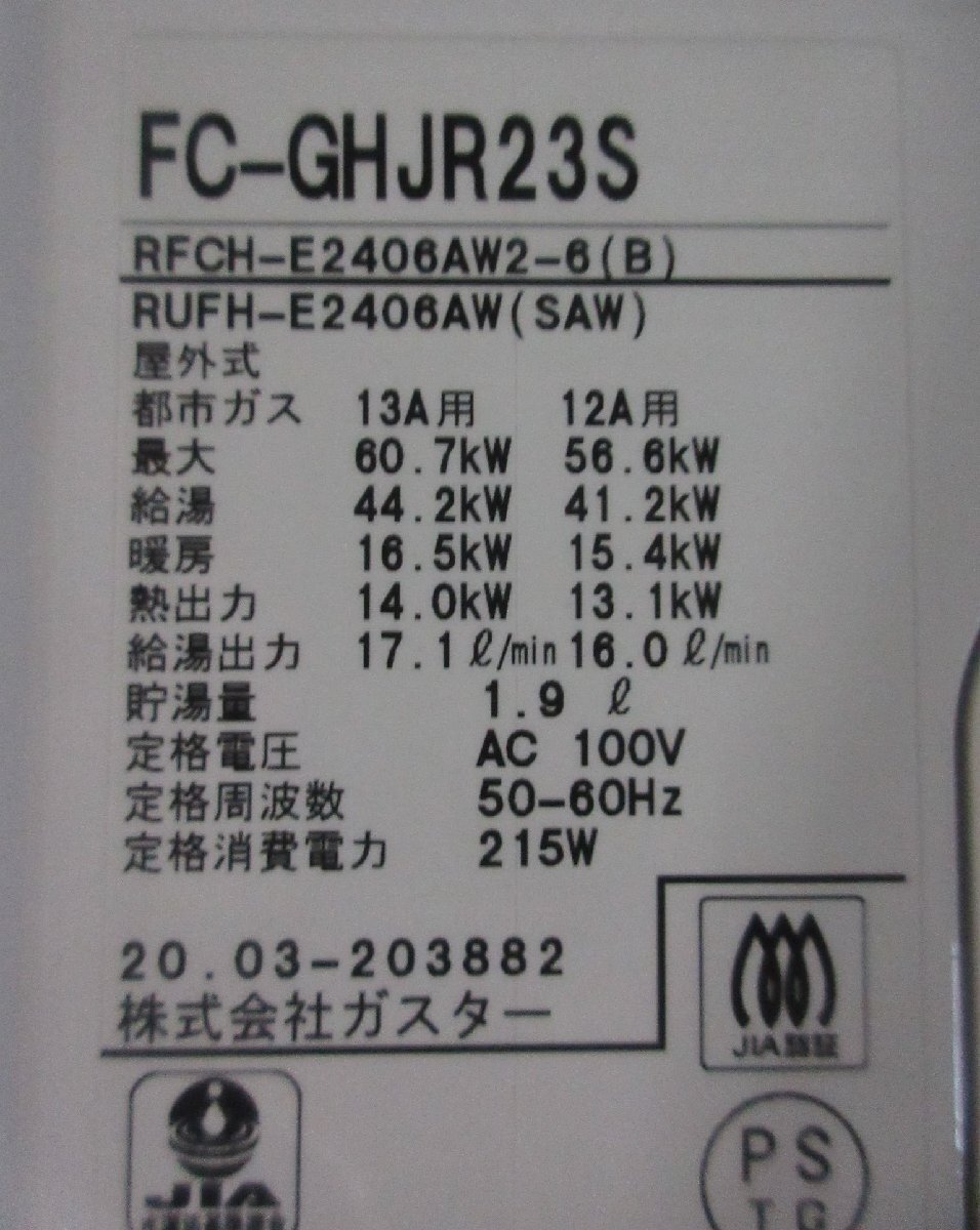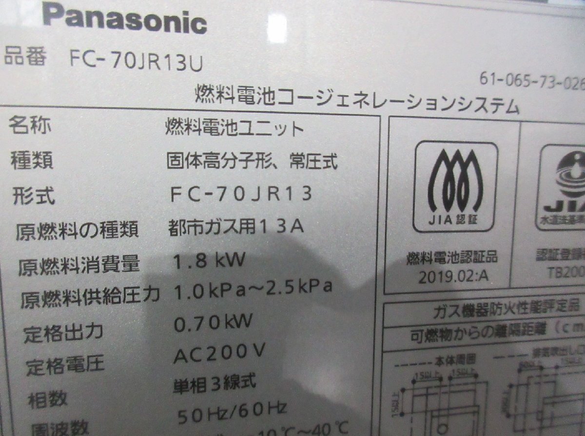 弊社オークション商品一覧はこちら ![]() ◎弊社では即決価格を設定しておりますので、是非ご利用ください!! ◎送料の確認方法は「発送詳細」をご覧ください。 ◎詳しい商品状態は「状態一覧」をご覧ください。なお、弊社の検品基準による主観となりますので、ご理解下さい。 ◎領収証も発行可能です。 発送番号:9850 商品:エネファーム 都市ガス メーカー:Panasonic 型番:バックアップ熱源機/FC-GHJR23S + 発電ユニット/FC-70JR13U + 貯湯ユニット/FC-GTJR23T リモコン:FC-BRJ1DS/FC-KRJ1DS 状態:B 中古品 2020年製 ※貯湯ユニットの中央部分のカバーはございません。 送料区分:大型2 大変お買い得となっております!この機会にご利用ください! ※写真掲載分が商品の全てとなります。写真掲載にない付属品等はございませんので、ご注意ください。 ※写真では見えづらいキズ、凹み、汚れがある場合もございますので、ご了承下さい。 ※埼玉県春日部市豊野町の倉庫に直接引き取りに来ていただける場合は、送料は無料となりますので、まずはお気軽にご相談ください!! (林) ━━━━━━━━━ ◎詳細◎ ━━━━━━━━━ 本文及びタイトルは外部ページのコピーであるため、間違いがある場合が稀にございますので、写真型番を優先とさせていただきます。 その為、写真の型番が確実な情報のため、写真型番から機能、設置方法等は事前にメーカーにご確認の上、ご入札下さい。 なお、タイトル及び商品詳細違いによる返品は受け付けておりませんので、必ず メーカー等にご確認をお願いいたします。 【貯湯ユニット仕様】 ・タンク容量:100L ・貯湯温度:約60℃ ・消費電力:1.3W(凍結予防時を除く) ・サイズ:W510×D350×H1650mm ・質量:36kg(運転時136kg) 【バックアップ熱源機仕様】 ・熱源機タイプ:潜熱回収型ガス瞬間式 ・給湯能力41.9kW/24号 ・追いだき能力:9.9kW ・暖房能力:14.0kW ・消費電力:215W ・サイズ:W480×D250×H750mm ・質量:38kg ・騒音値:49dB(A)以下 【熱源機】 ・24号 ・エコジョーズ ・都市ガス用 御検討頂き、ありがとうございます!弊社ホームページもご覧ください! 給湯器の買取、売るなら! (こちらは弊社の買取専用サイトとなりますので、お電話や問い合わせフォームで、オークションのご質問はお受けできませんので、ご注意下さい。) ※オークションの質問は、info@worline.co.jp までお問い合わせください。