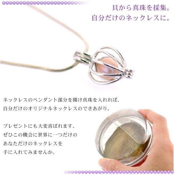ネックレスのペンダント部分を開け、真珠を入れれば、自分だけのオリジナルネックレスのできあがり!