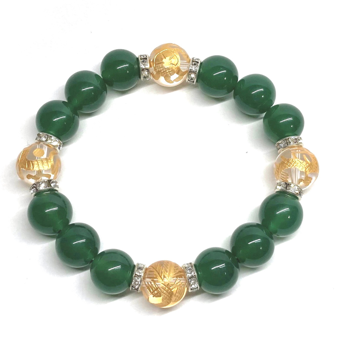 四神獣金彫水晶×緑瑪瑙 12mm パワーストーン ブレスレット天然石 青龍 白虎 玄武 朱雀 運気上昇 お守り 金運 健康運 四神獸 四神相応 S