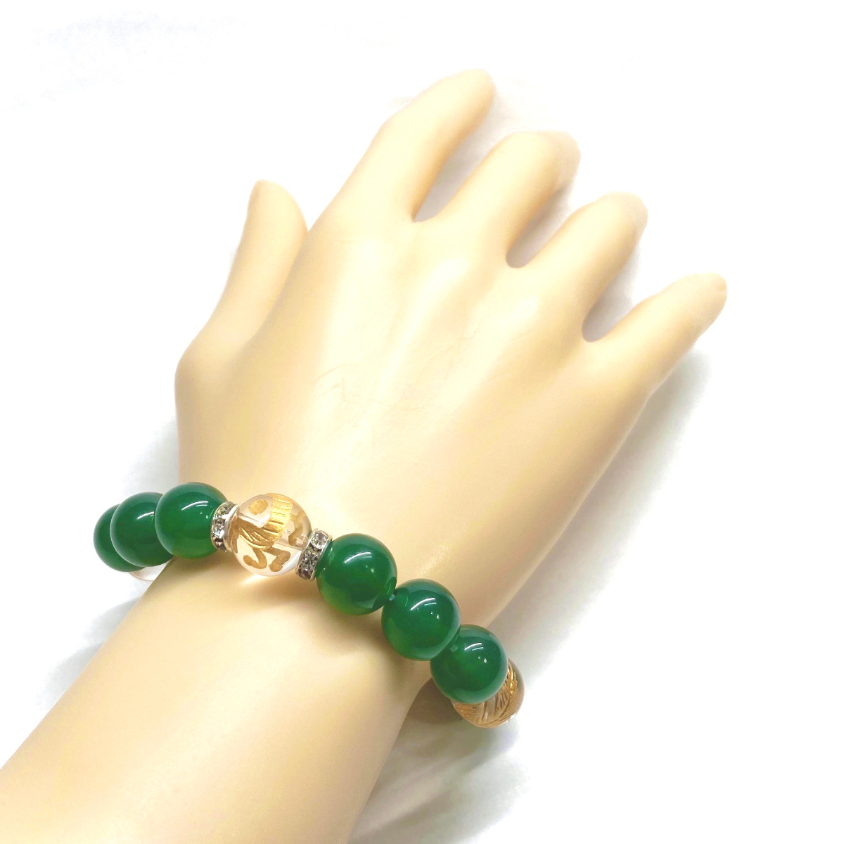 こちらは、四神獣金彫水晶と緑瑪瑙を組み合わせたパワーストーンブレスレットです。四神獣は、中国の伝説で4つの方向(東西南北)を守護する神聖な神。四神獣、厄災から身を守り、多くの運気を呼び込むと言われております。石大きさは程よくインパクトのある12mm玉で内周 約17cmです。 数に限りがございますので気になる方はお早めにどうぞ。