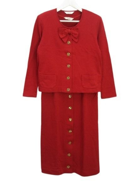 インゲボルグ INGEBORG スウェット セットアップ ジャンパースカート ジャケット 赤 レッド リボン ワンピース レディース