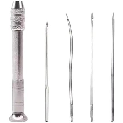レザークラフト 針 革工具セット 4本針 千枚通し 切替式 交換 針縫う 手縫い 革縫製用具 靴修理 丸穴針 直線針 曲がり針 片手 ミシン 裁縫