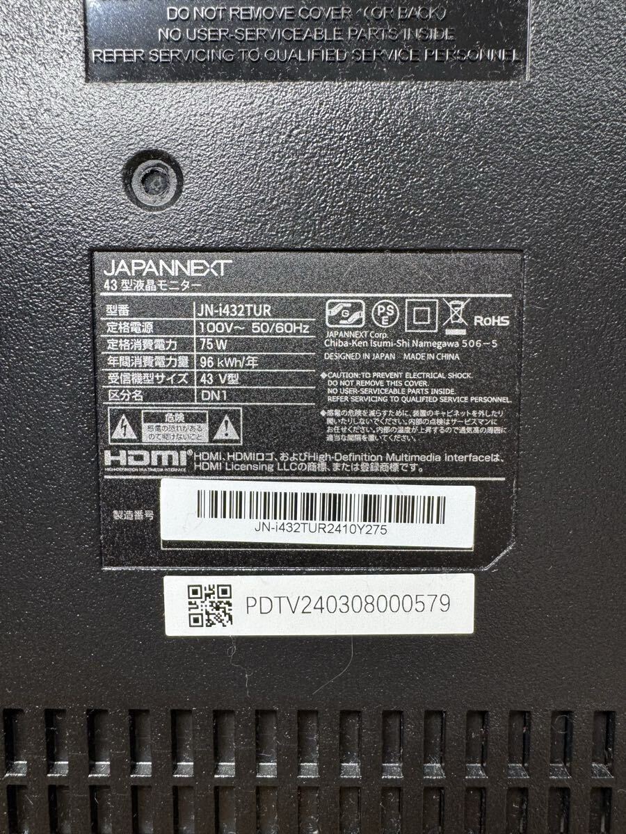 JAPANNEXT 43インチ 4Kモニター 3840x2160解像度 IPSディスプレイ 2025年2月購入
