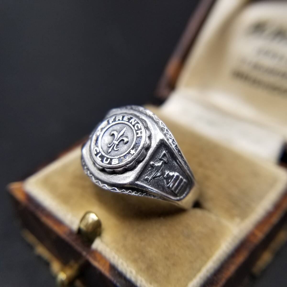 Bale社製 Fleur de Lis Society /French Club ヴィンテージ メンバーズ リング 925 シルバー シグネット 銀 指輪 フクロウ彫金 Y24-X