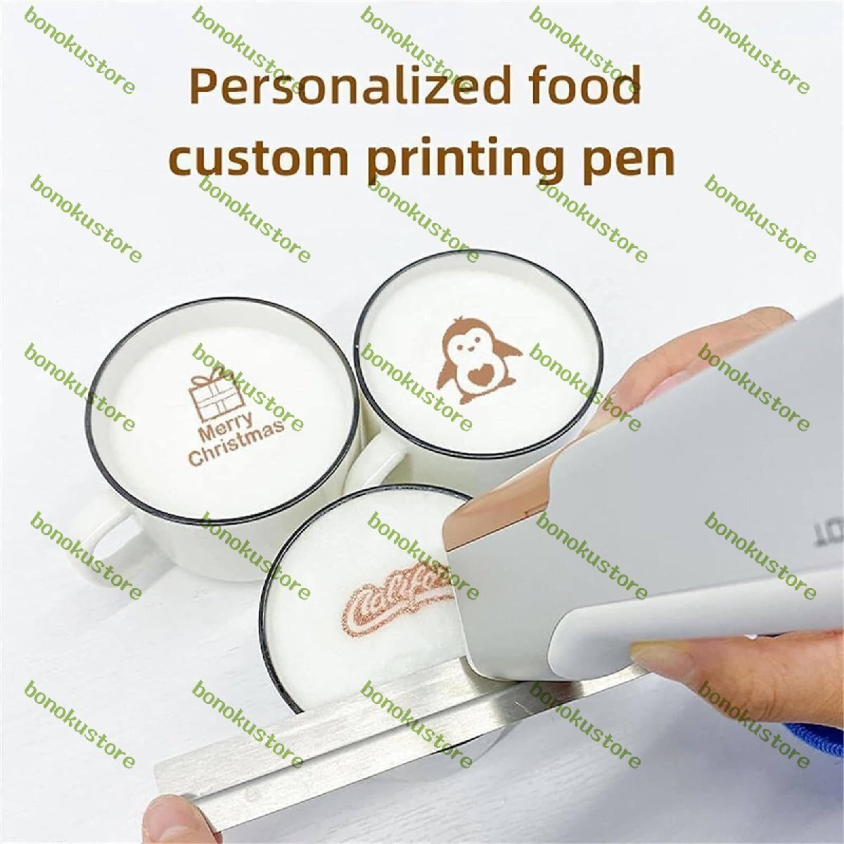 【パーソナライズされたカスタマイズ】: ミニハンドヘルド印刷ペンは、アプリ上でさまざまな祝福やパターンをカスタマイズして、あなたの無限の想像力を満足させることができます。コーヒー、ヨーグルト、カクテルなどのドリンクを作るだけでなく、パン、ケーキ、マカロンなどにもお使いいただけます。