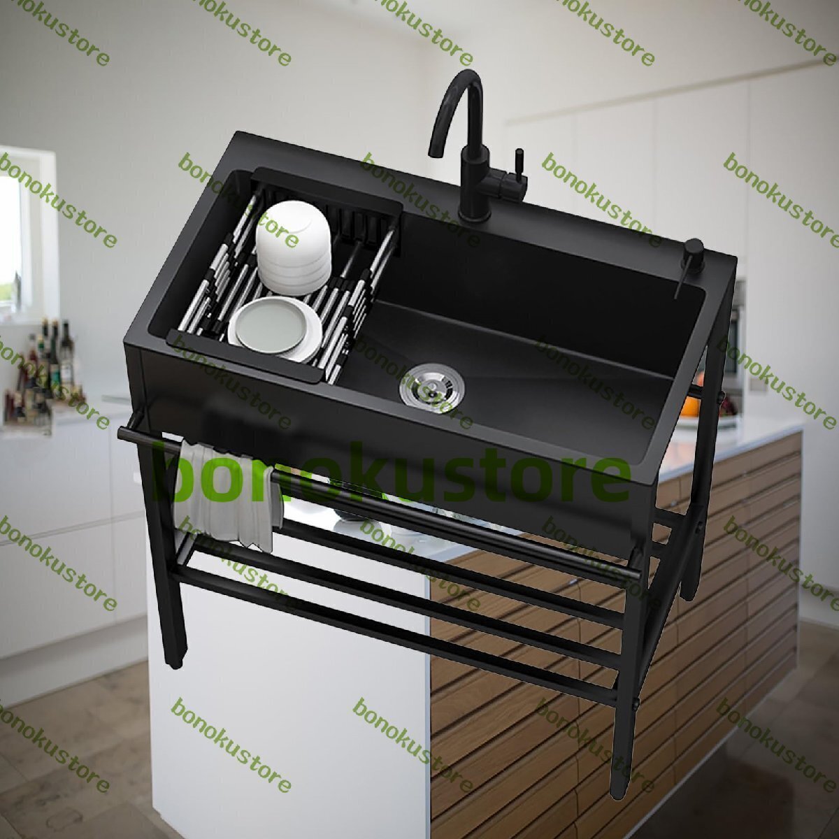 屋外流し台ステンレス 業務用シンク 外よう流し台 多機能シンク 収納棚と蛇口付き 自立型シンク スタンド付きポータブル手洗いステーション シングルボウルキッチンシンク 自立型シンク 洗面所 飲食店 家庭 工場 農園 厨房 BBQ アウトドアに 対応 (Size : 60x45x86cm)