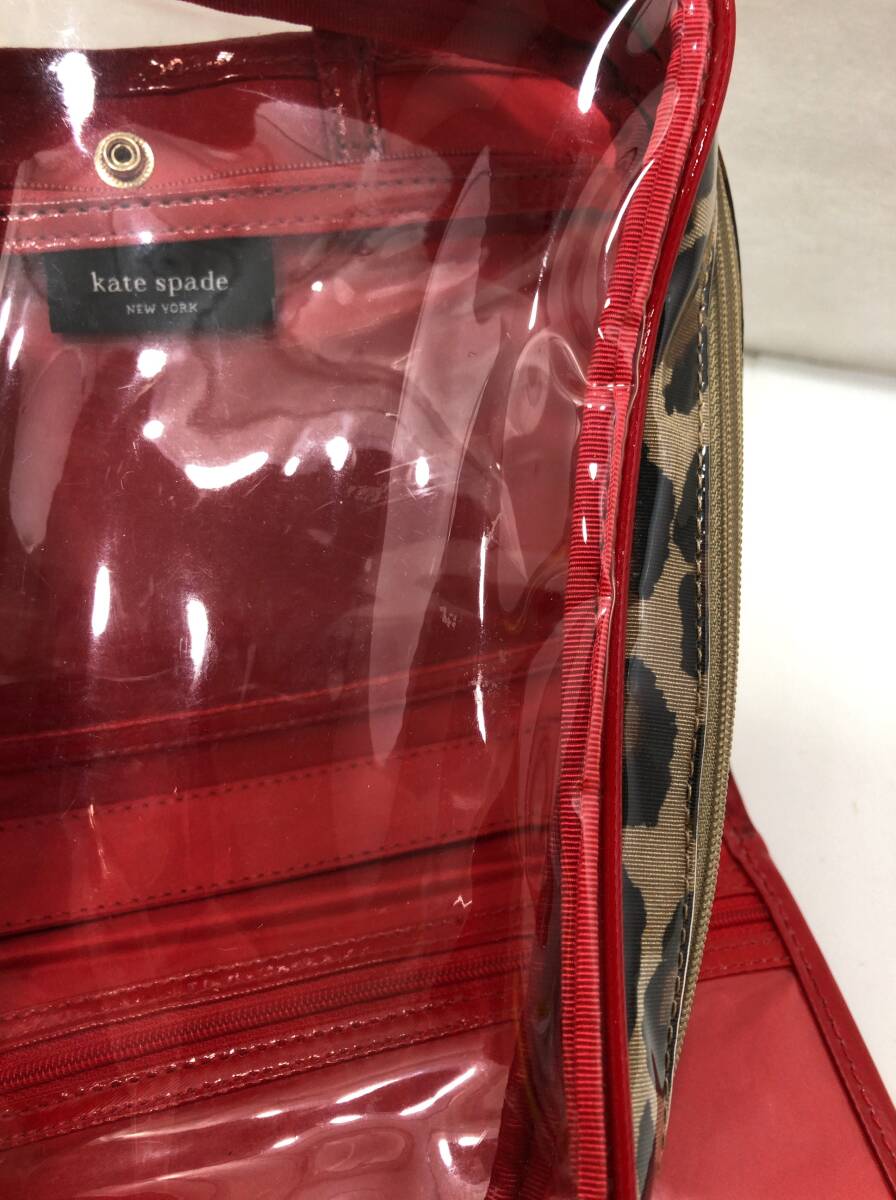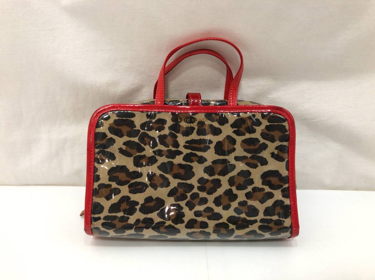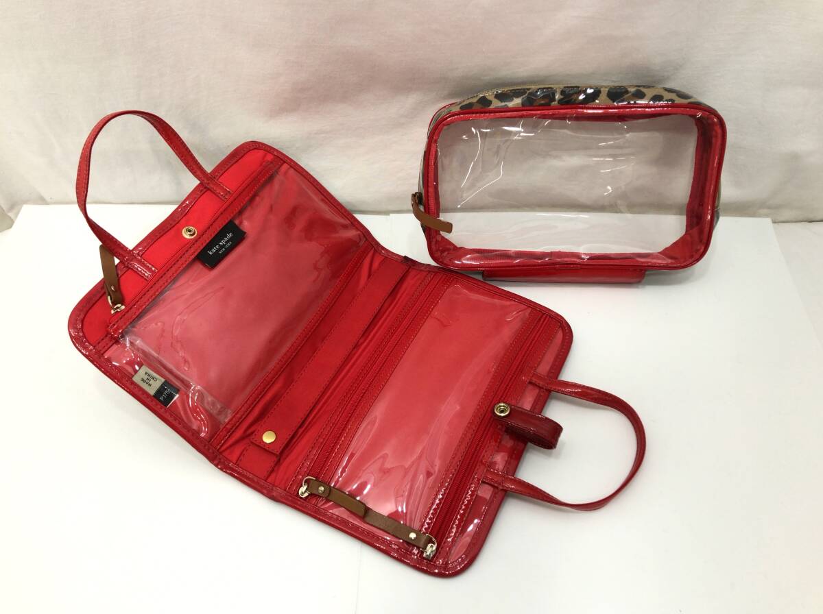 kate spade トラベルポーチ トラベルバッグ ミニ メイク バッグ ポーチ ヒョウ柄xレッド ケイトスペード E1