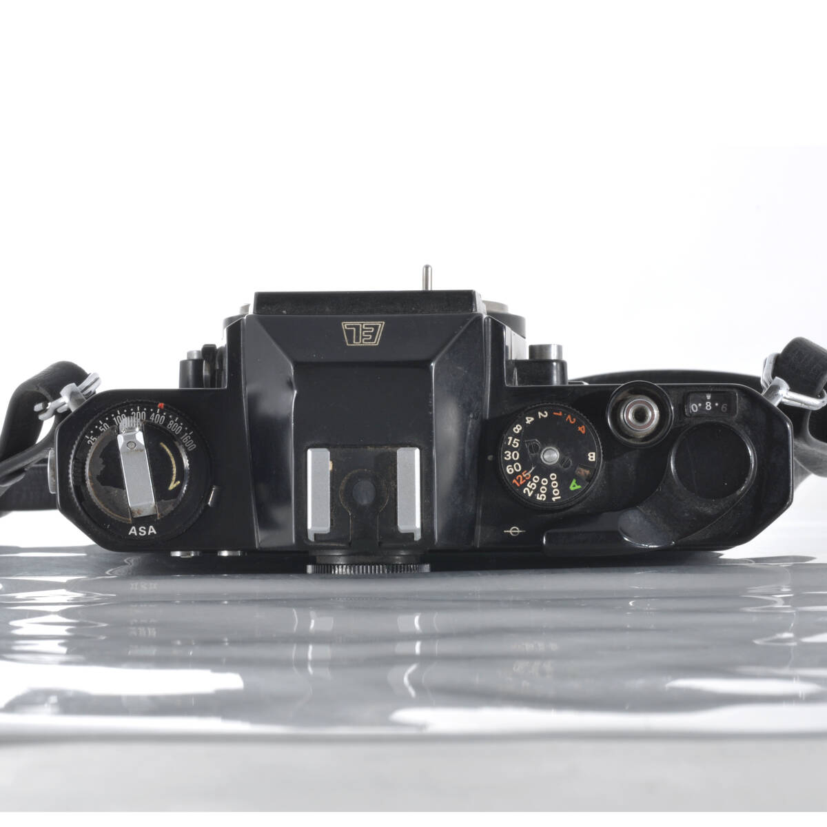 Nikomat ELは、ニコンが1972年に発売した電子制御式シャッター搭載の一眼レフカメラです。機械式と電子式の融合により信頼性と精度を両立し、クラシカルなデザインと操作感で人気を博しました。
