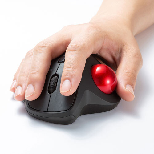 ※配送の送り主はサンワサプライ(株)と記載されています。沖縄・離島配送不可となります。 当店は正規販売代理店です。 特長 指でボールを転がしてカーソルを操作する、トラックボールです。 力まずリラックスした状態で使用できる、親指操作タイプです。 手のひらを軽く添えるだけでフィットするエルゴノミクス形状です。 親指で動かすのにちょうど良い34mm中型サイズのボールを採用しています。 用途に合わせてカーソル速度が変更できる、カーソル速度切替機能付きです。600・800・1200・1600の4段階の切替えができます。 左右ボタン、ホイール(スクロール)ボタン、カウント切り替えボタンに静音スイッチを採用しています。 電波障害に強い2.4GHzデジタル帯で、通信範囲が半径10mの広範囲で安定したデータ通信が可能です。 ※電波干渉のない場合に限ります。 不使用時の電池消耗を防止する電源ON・OFFスイッチ付きです。 レシーバーはマウス本体裏面に差し込むだけの簡単収納です。 メーカー保証期間180日 ※当店発注日からになります。 気をつけておりますが、タイミングによっては在庫切れの場合があります。 仕様