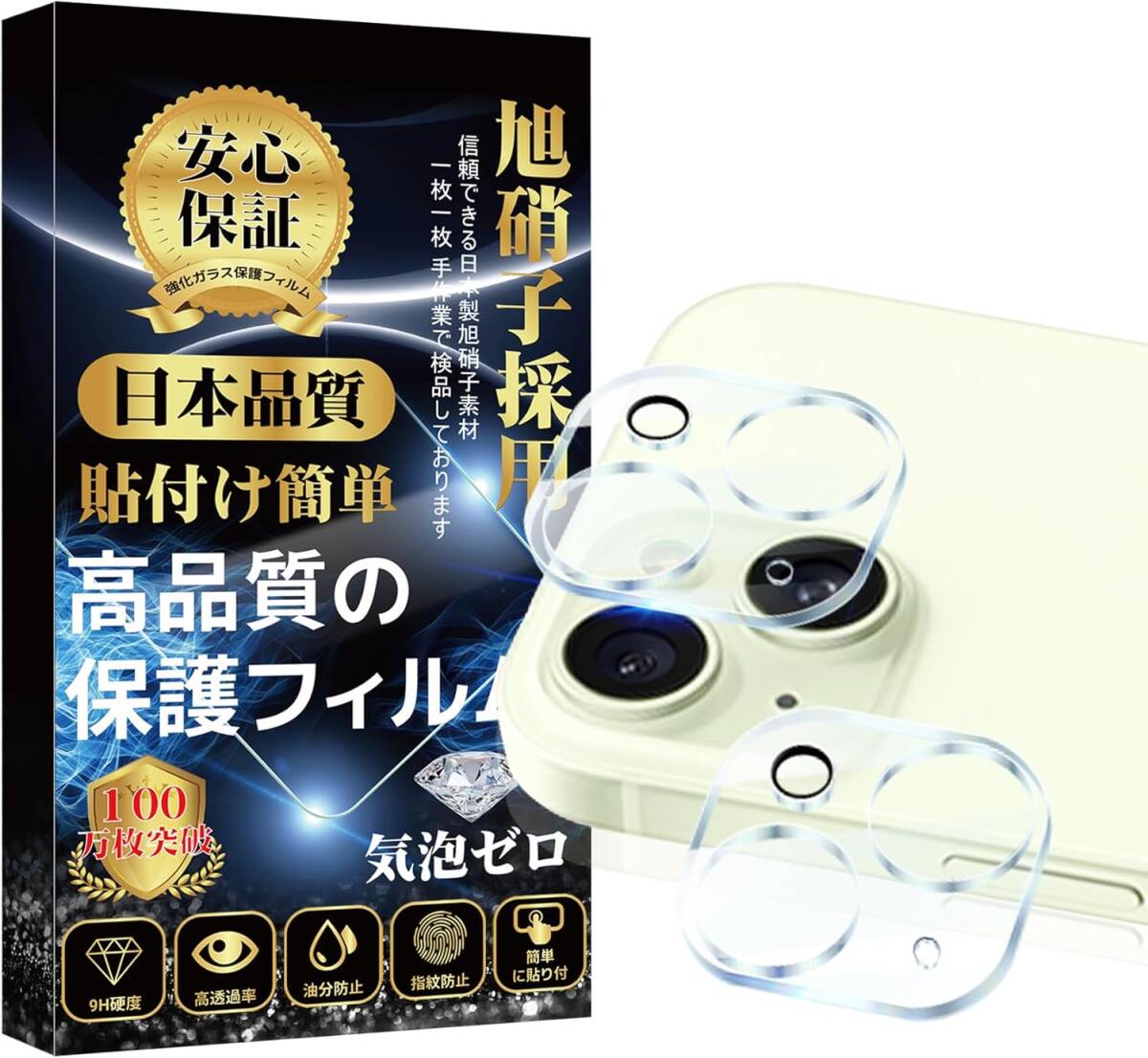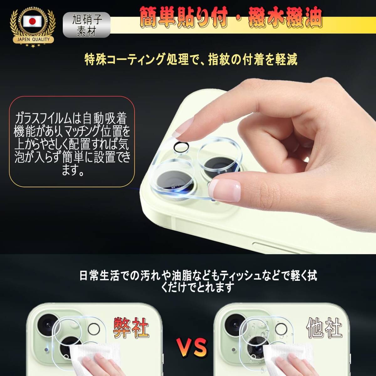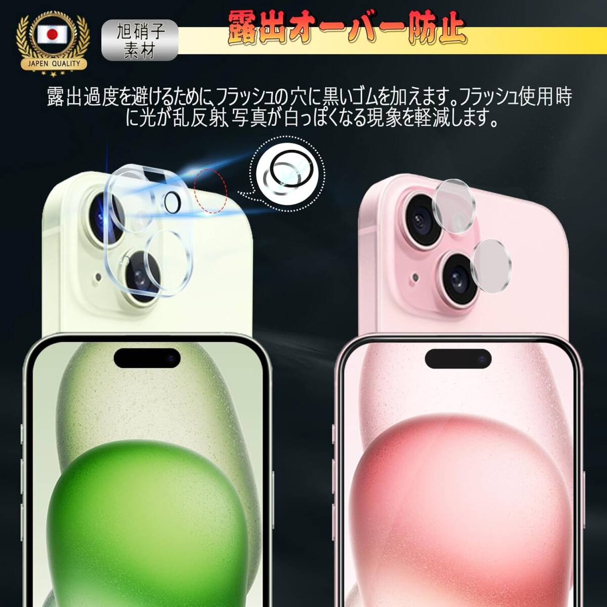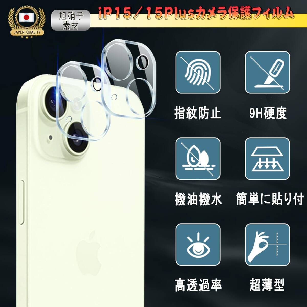 対応 iPhone15 カメラフィルム iPhone 15 Plus カメラ保護 (2枚) 素材旭硝子製 高透過率 硬度9H 2眼レンズ保護 露出オーバー 貼り付け簡単 キズ防止 防塵 アイフォン15 カメラカバー アイフォン15 プラス レンズフィルム