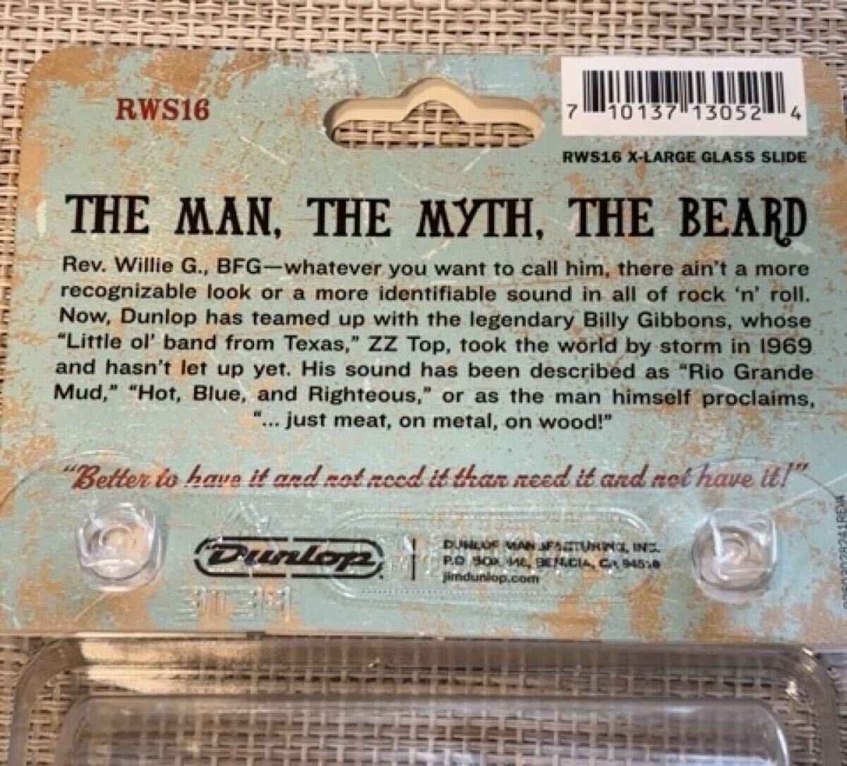 そのギタリスト、ビリー・ギボンズとダンロップのコラボレーションによって誕生した特別なスライドバーです。