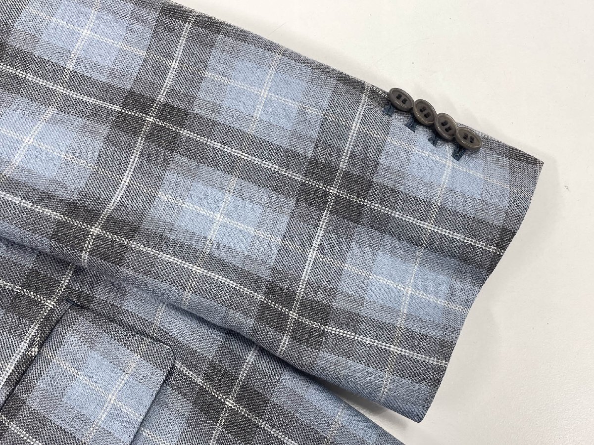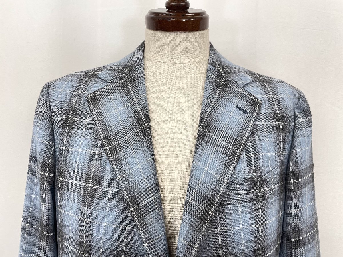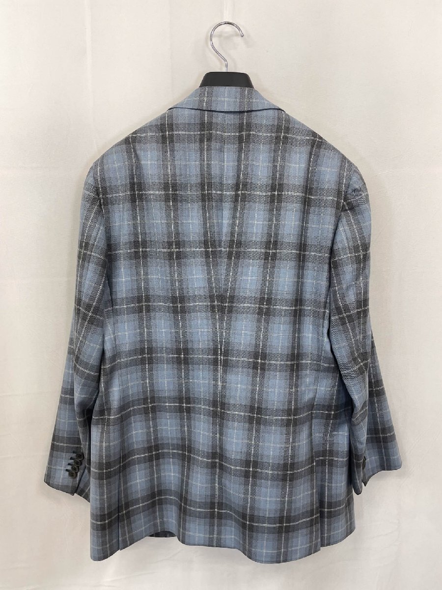 超美品【コルウ神戸 COL】1127-599-0655 ウール100% 3B段返り チェック柄 オーダージャケット (メンズ) 48相当 青×グレー系 ◇17MJ0779◇