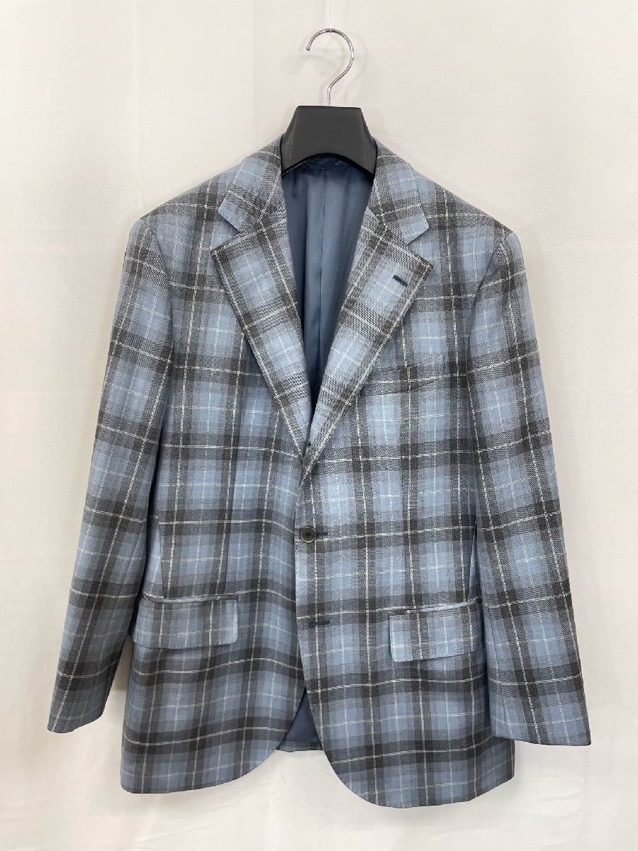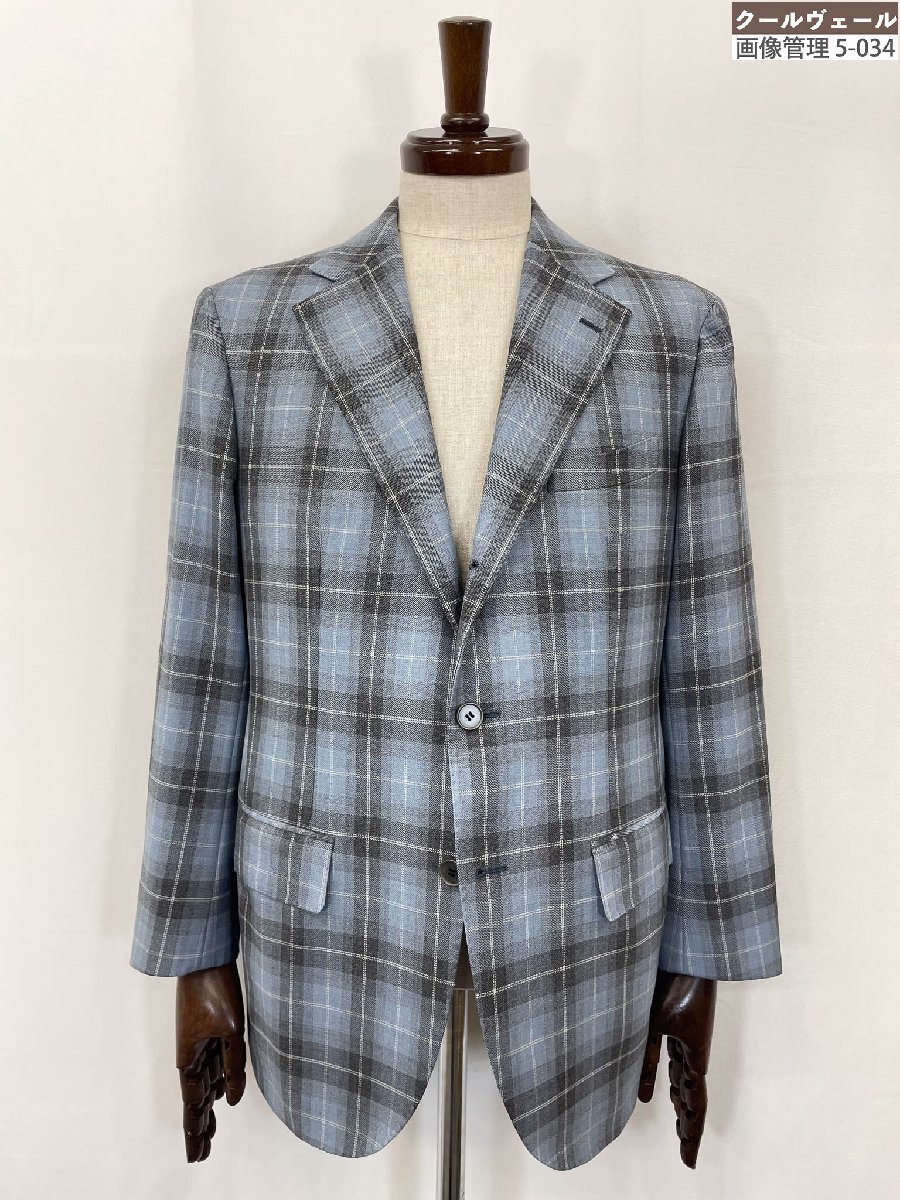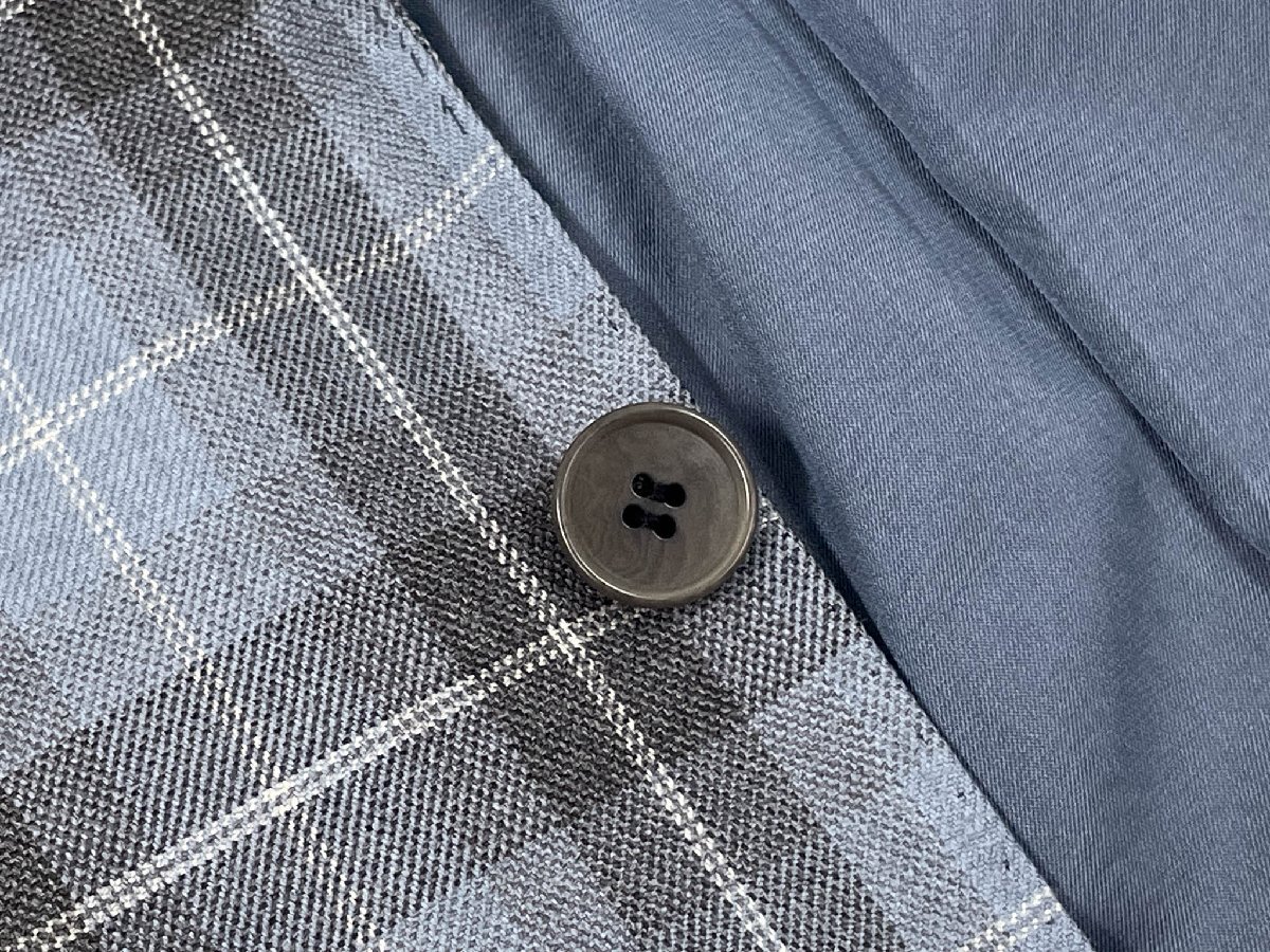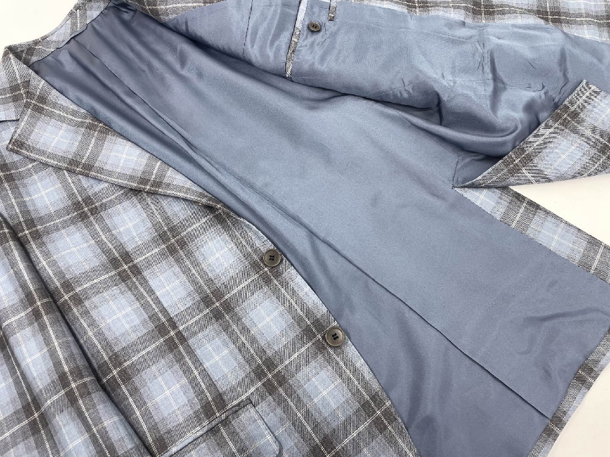 超美品【コルウ神戸 COL】1127-599-0655 ウール100% 3B段返り チェック柄 オーダージャケット (メンズ) 48相当 青×グレー系 ◇17MJ0779◇