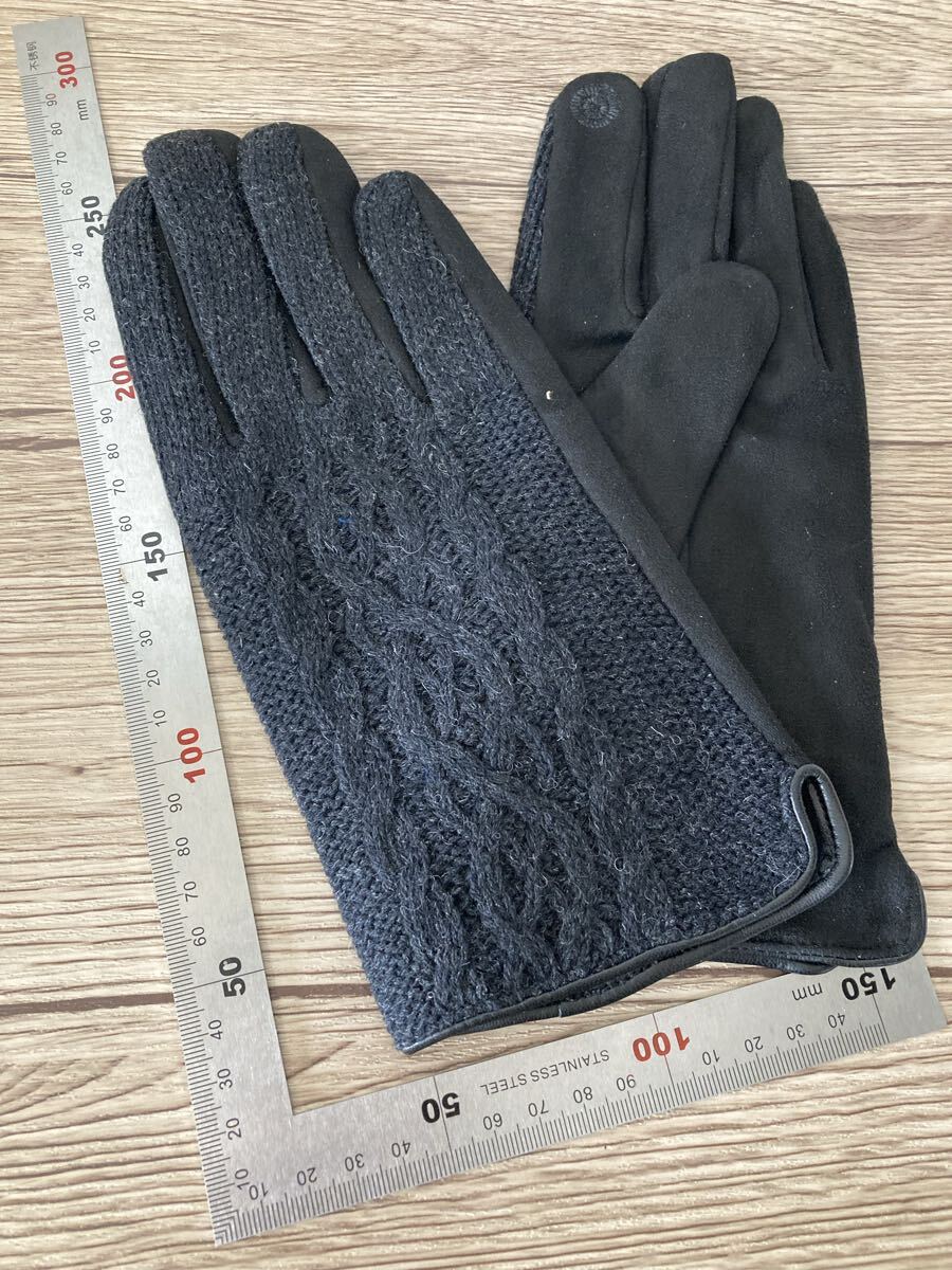 【素材構成】:手の甲:25%ウール+65%ポリエステル+10%スパンデックス;手のひら:スエード(90%ポリエステル+10%スパンデックス);【サイズ】フリーサイズ:手のひら回り:約21-22.5cm、中指長さ10.3cm、総長24.5cm。