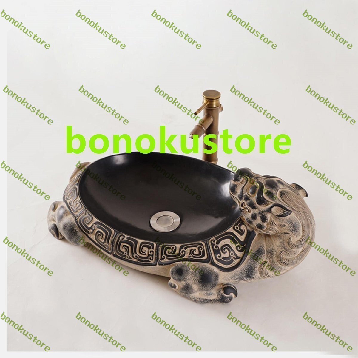 洗面化粧台 動物型洗面化粧台 創造性のあるバスルームシンク カウンター上洗面台 アート洗面台 ヴィンテージ ストーンカラー 洗面化粧台 蛇口付き コンボ バスルーム 洗面化粧台