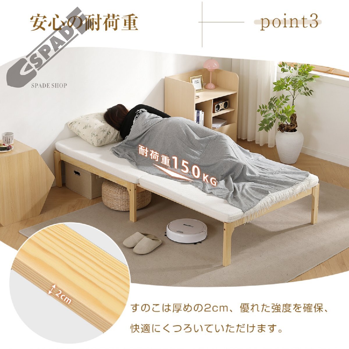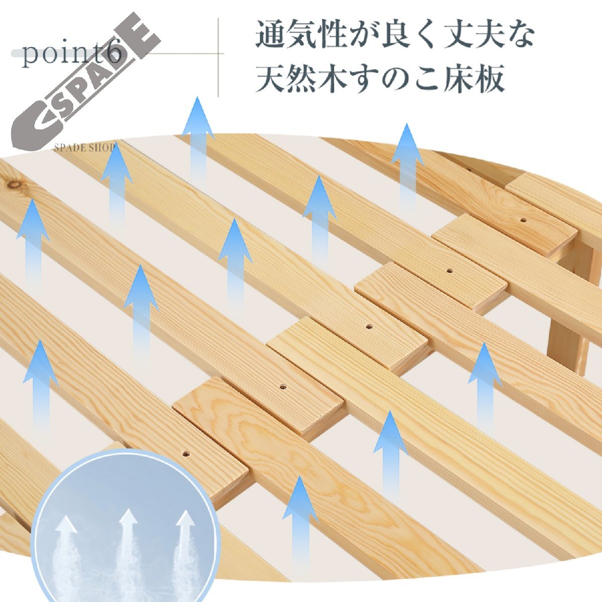 • 通気性が良く丈夫な天然木すのこ床板【安心の耐荷重150kg】 ※床板の上に直接乗ったり、薄手のマットレスや布団で使用すると、床板が破損する恐れがあります。
