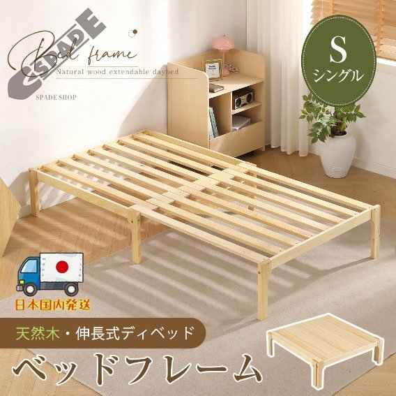 【国内発送】ディベッド ソファベッド シングル 天然木製 伸長式ベッド ベッドフレーム 伸縮 下収納 おしゃれ 2way 天然木 来客用すのこ仕