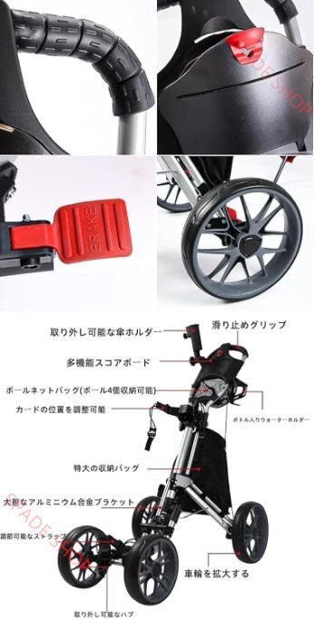 【製品仕様】カラー:ブラック。サイズ:長さ110cmx幅90cm。重さ8.3KG。 4個ホイール、本体 「注意:キャディーバッグは含めていません。」 【耐久性】多機能手押しボールカートは十分な機能を備えており、1台のカートで日常のニーズに対応できるため、旅行の負担がなくなりました。ゴルフカートは高品質のアルミニウム構造とプラスチックでできており、さまざまな地形で強力な耐荷重能力と完璧なバランスとトラクションを確保します。頑丈のタイヤにより、優れた安定性を提供します。 【移動が簡単】小型/強力な耐荷重/折りたたみ可能 3秒で素早く折りたたむことができます 最大の移動性のために、このゴルフカートにはボールベアリングホイールもあり、どんな地形にも滑らかな乗り心地を備えています。機能的な手動で作動したブレーキ設定、折りたたみ式で保管が簡単です。 【収納便利】オープンして、一つの流体の動きで終了。迅速な折り畳み機構と、クイックリリースホイールで、それはほんの数秒であなたのトランクに戻って準備ができて、簡単に格納され、コンパクトに収納半分に折ります。 【幅広い用途】折りたたみゴルフバッグ四輪トロリー ゴルフカートはゴルフ場の環境に合わせて設計されており、ゴルフ愛好家に大変便利です。ゴルフバッグを背負ってのホール移動は結構な重労働ですが、 このキャリーカートさえあれば、らくらくホール移動。 商品の説明商品の説明 ゴルフカートはゴルフ場の環境に合わせて設計されており、ゴルフ愛好家に大変便利です。ゴルフバッグを背負ってのホール移動は結構な重労働ですが、 このキャリーカートさえあれば、らくらくホール移動。 ゴルフ用カートの利点: 持ち運びが易いで、場所を取らない、移動が簡単、省エネ。 静かで、耐久性を持って、よりよい道の適応性があります。 押したり引っ張ったりするのが簡単で、曲げたり足を触ったりしない。 製品情報: 製品名:ゴルフカート 材質:アルミニウム合金+プラスチック カラー:ブラック、レッド パッケージサイズ:36.5*36.5*67CM 製品重量:8.3 (KG) |