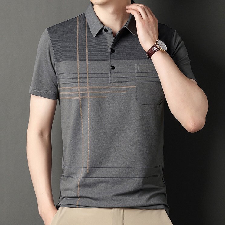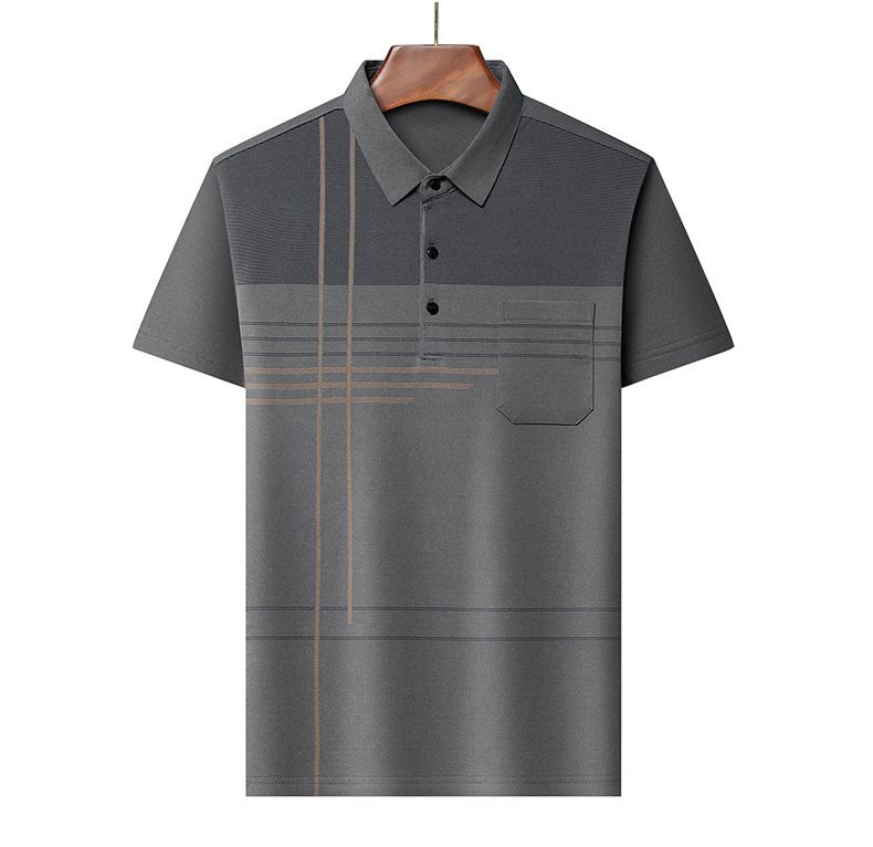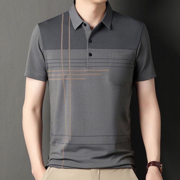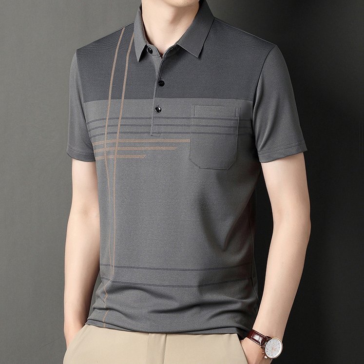 ポロシャツ イタリア製造 上品 薄手 速乾 快適 ストライプポロシャツ 半袖 POLO トップス 紳士 ゴルフ 通勤 SIZE:M fz94.hs