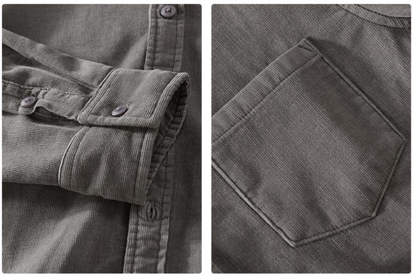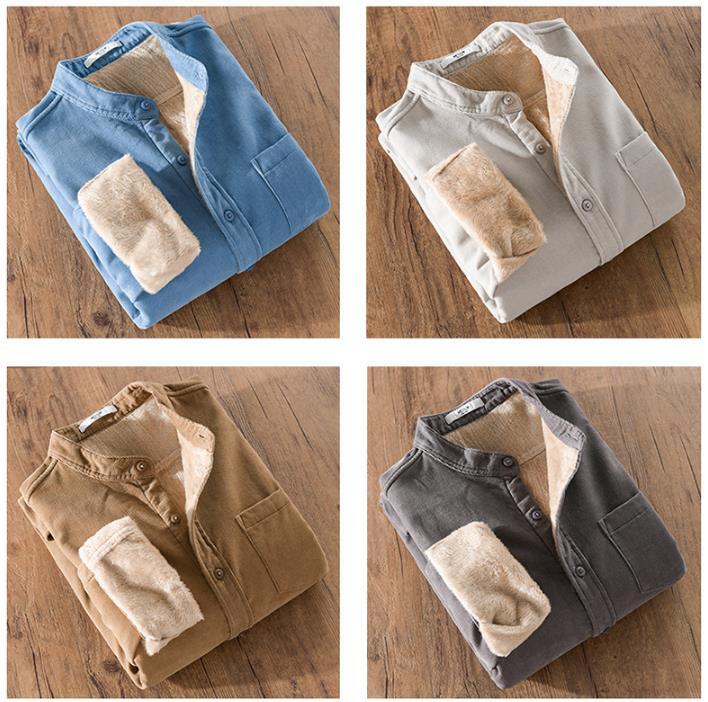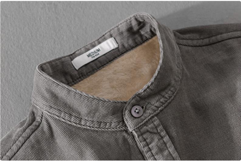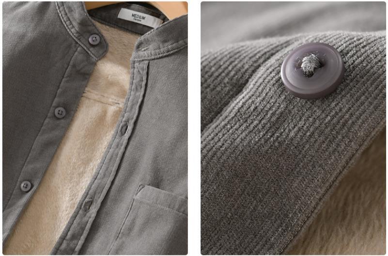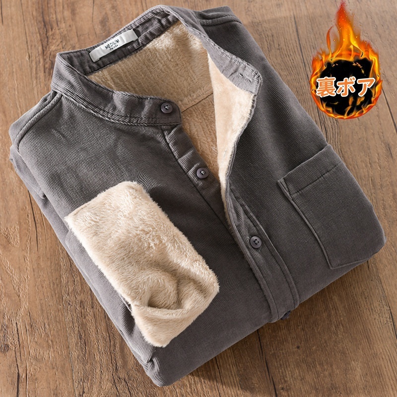 裏フリース 長袖シャツ トップス 裏ボア裏起毛 メンズ・新品 コーデュロイ シャツジャケット ブルゾン ワークシャツ【Y9433】濃いグレー L