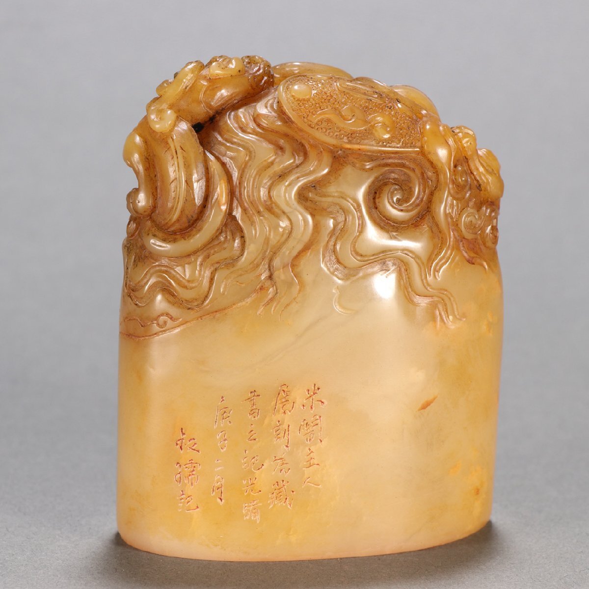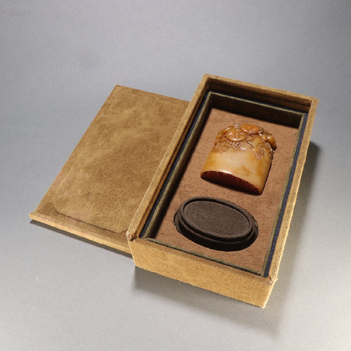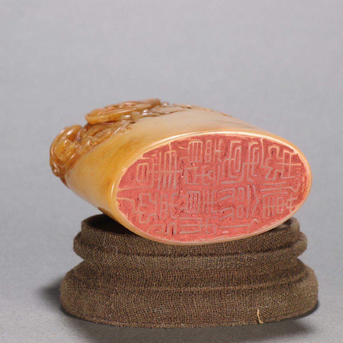 【安】清時代 叔孺銘 寿山田黄石彫 龍紋印章 印鑑 共箱 極細工 古置物 古擺件 中国古美術 時代物 356 サイズ(約寸) |