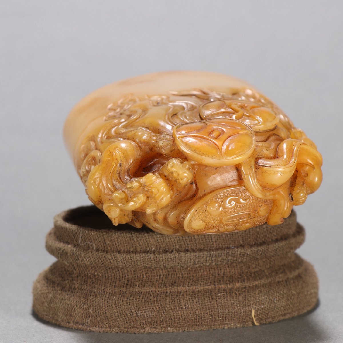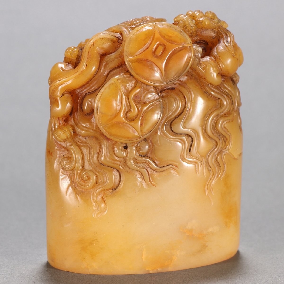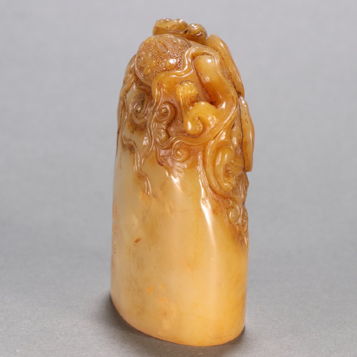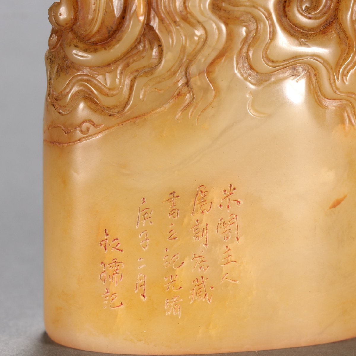 【安】清時代 叔孺銘 寿山田黄石彫 龍紋印章 印鑑 共箱 極細工 古置物 古擺件 中国古美術 時代物 356 サイズ(約寸) |