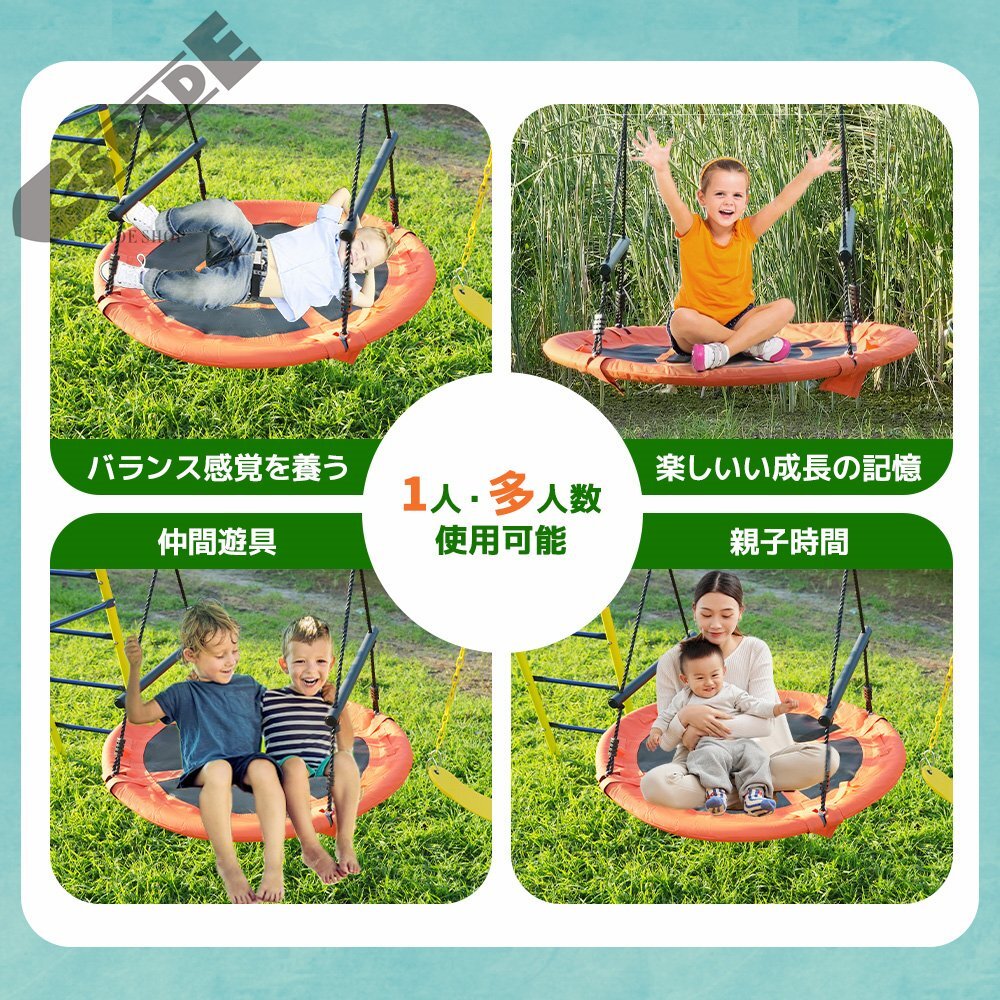 • 【ブランコ】2種類ブランコを設置 より多くの遊び方!円盤型ブランコに乗ってリラックスするのは、とても心地よいです。全身を横たえながらゆったりとくつろげるので、気持ちがリフレッシュされます。ブランコに乗ることで、大きな楽しさを感じることができ、バランス感覚が養われます。大人でも遊べるように  耐荷重:100KG家族全員で楽しむことができます。