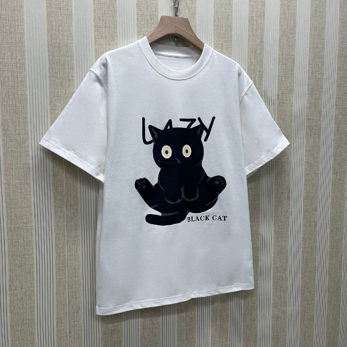 半袖Tシャツ イタリア製造 コットン100% ソフト 通気 丸首 プリント柄 ゆったり カジュアル スウェット プルオーバー 日常 夏 サイズ2XL