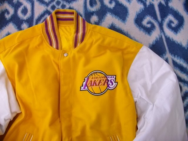 八村塁選手が加入して注目の、ロサンゼルス レイカーズ 袖革?レザー?黄リバーシブルジャケット 極美品です。これからの季節にいかがでしょうか?