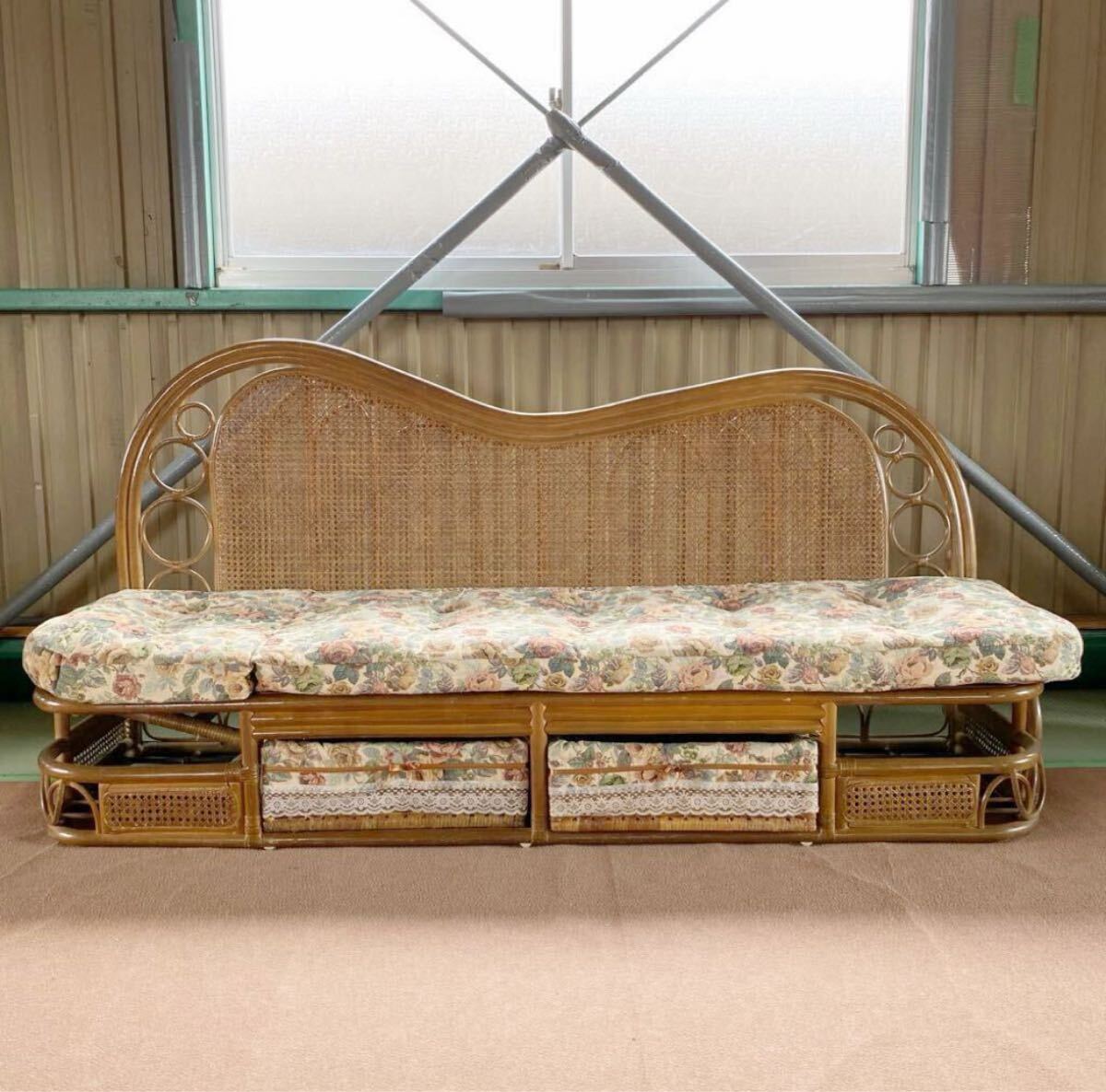 商品名 : カウチソファ 籐ソファ ラタンソファ 引出し クッション モダン アジアン