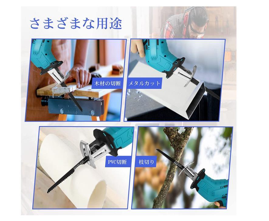 レシプロソー コードレスレシプロソー 充電式レシプロソー チェーンソー 充電式のこぎり /無段変速マキタバッテリー使用可
