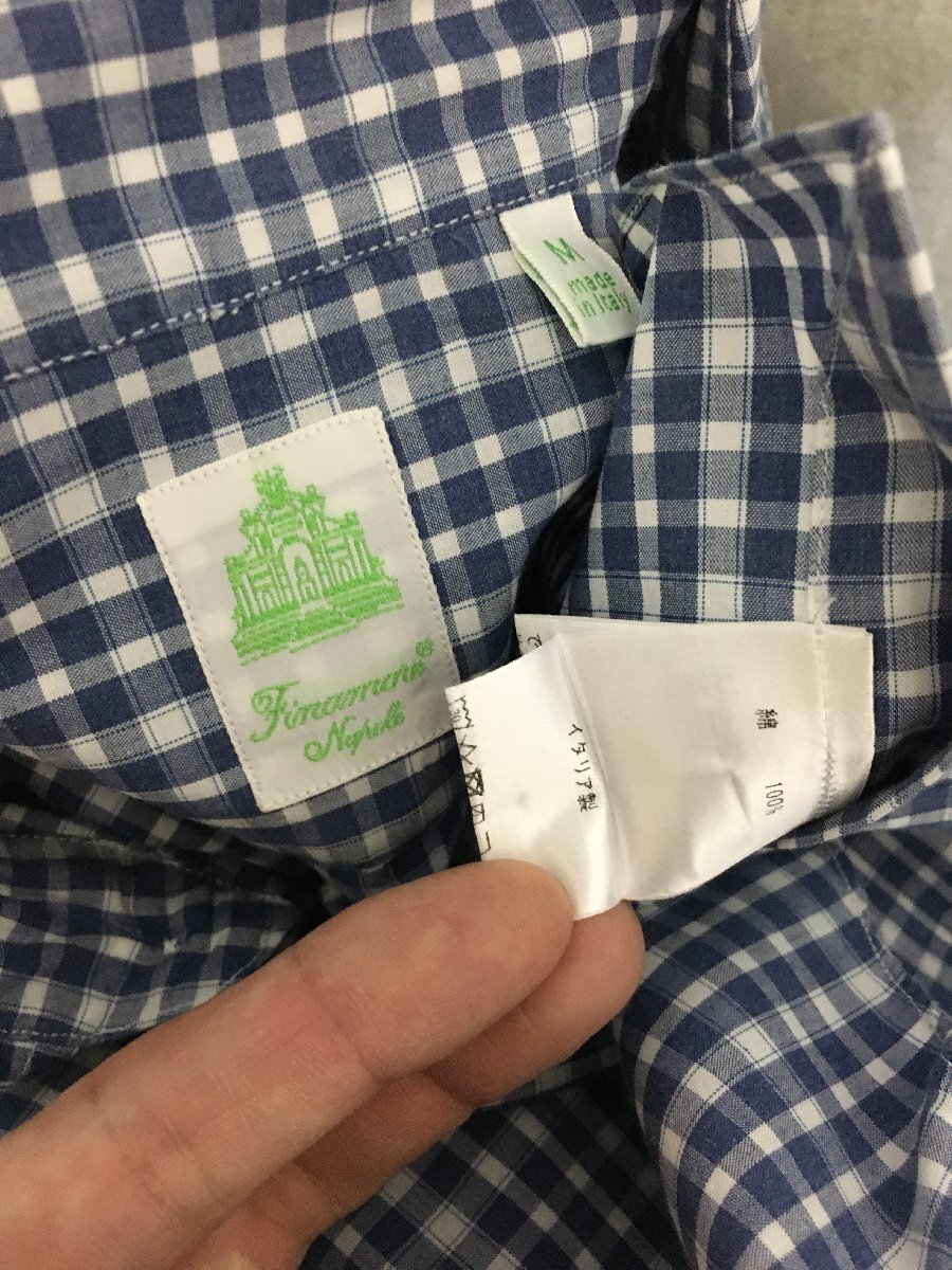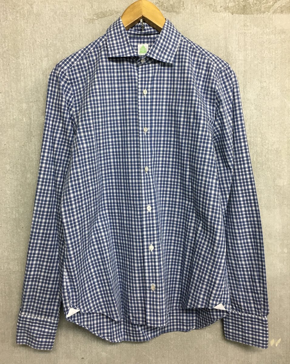 ◆ ◆国内正規 Finamore フィナモレ ワイドカラー チェック シャツ ブルー サイズM 美品 クリーニング済み