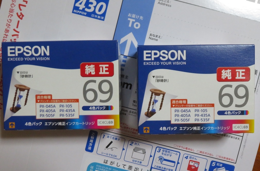 EPSON エプソン 純正 IC4CL69 2セット (ICBK69 ICC69 ICM69 ICY69) 砂時計 レターパックライトで発送します。