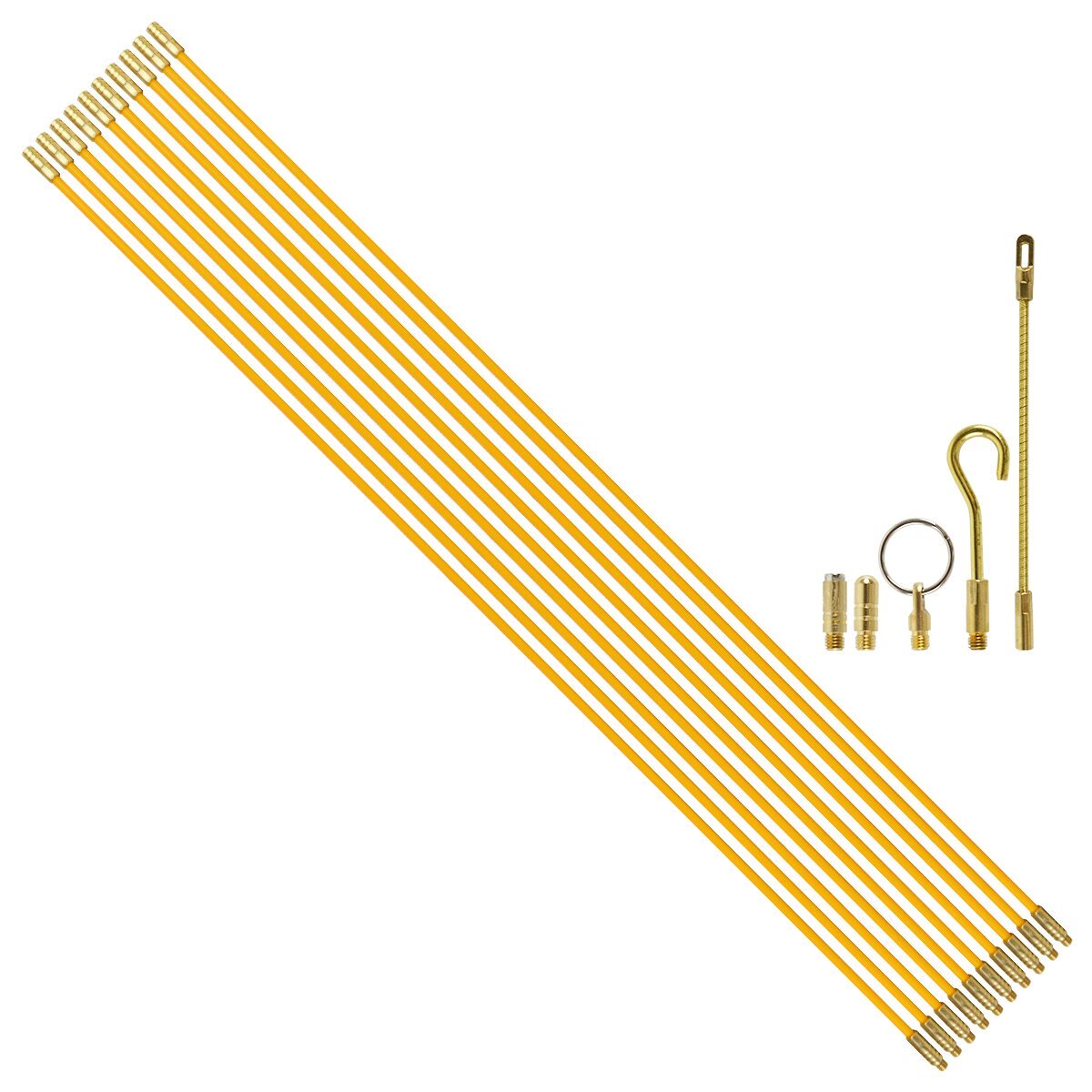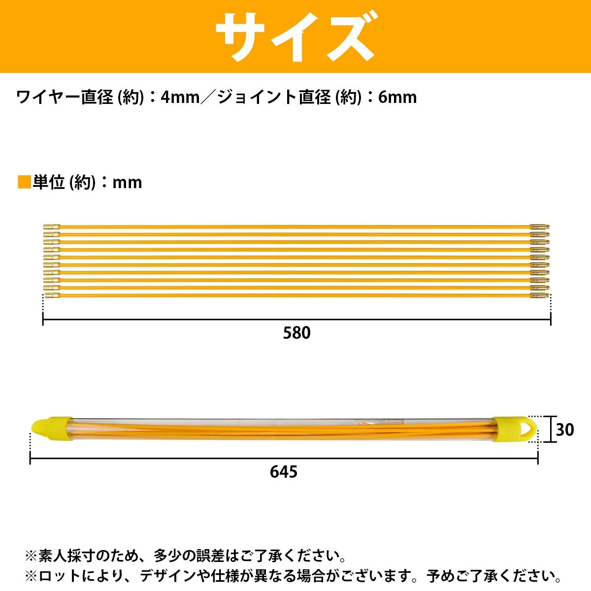 通線ワイヤー 5.8m ケーブル ワイヤー 索引具 58cm×10本 ジョイントライン 通線 ロッド 配線通し フック 先端 金具 付き