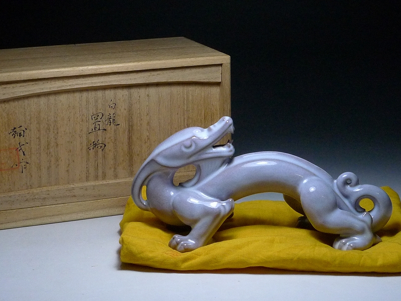 楠部弥一造・白龍 置物・共箱共布付き・陶磁器・干支・飾り・古美術・楠部彌弌